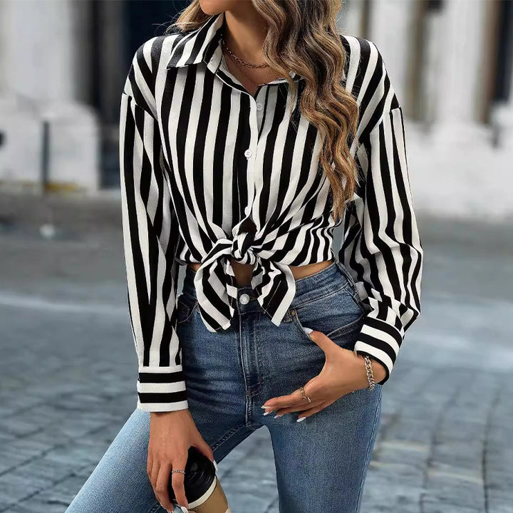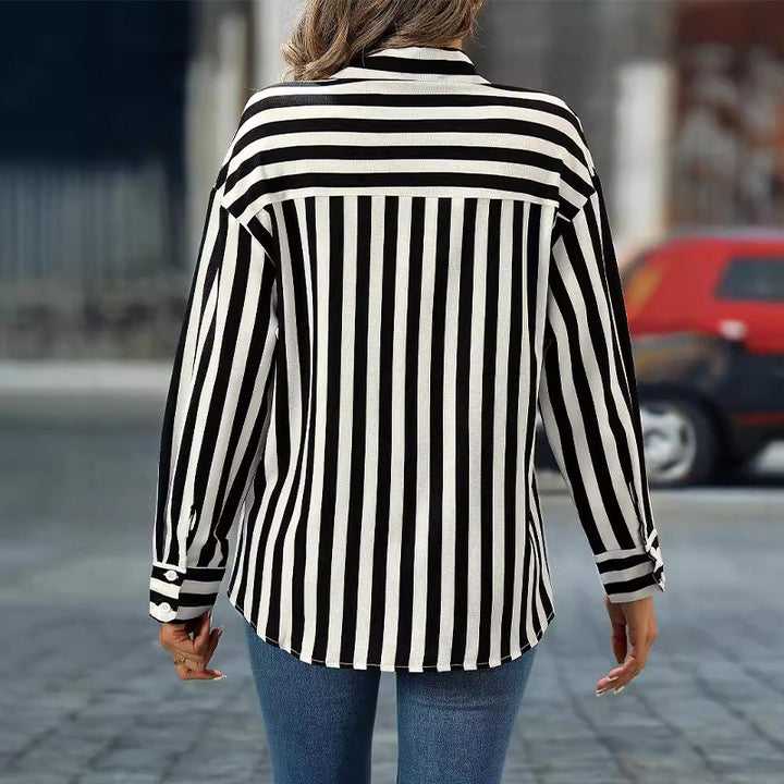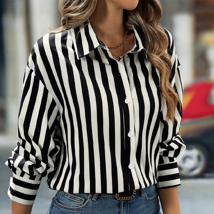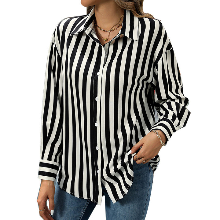 Small batch custom striped long-sleeved shirts, spring and autumn European and American temperament cardigan shirts, women's clothing, labor and ma...