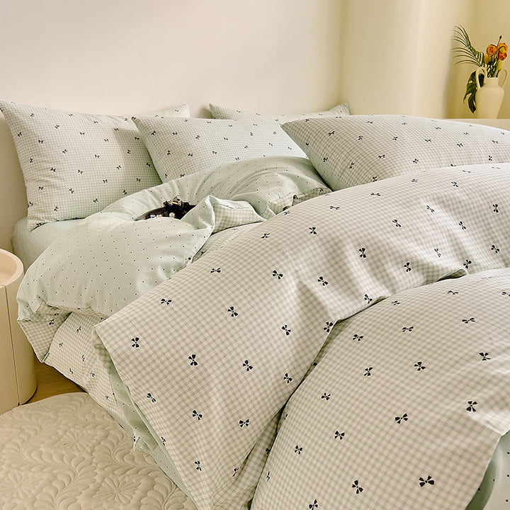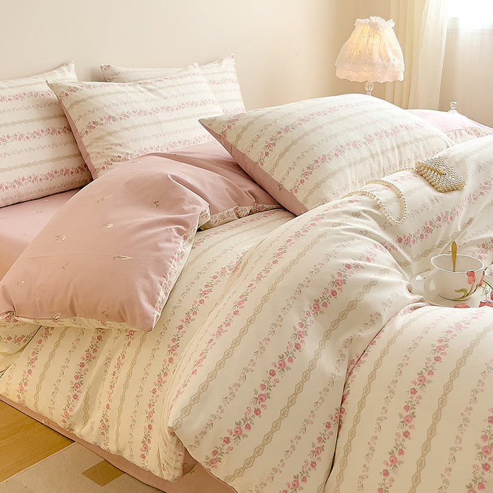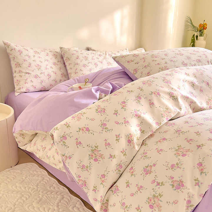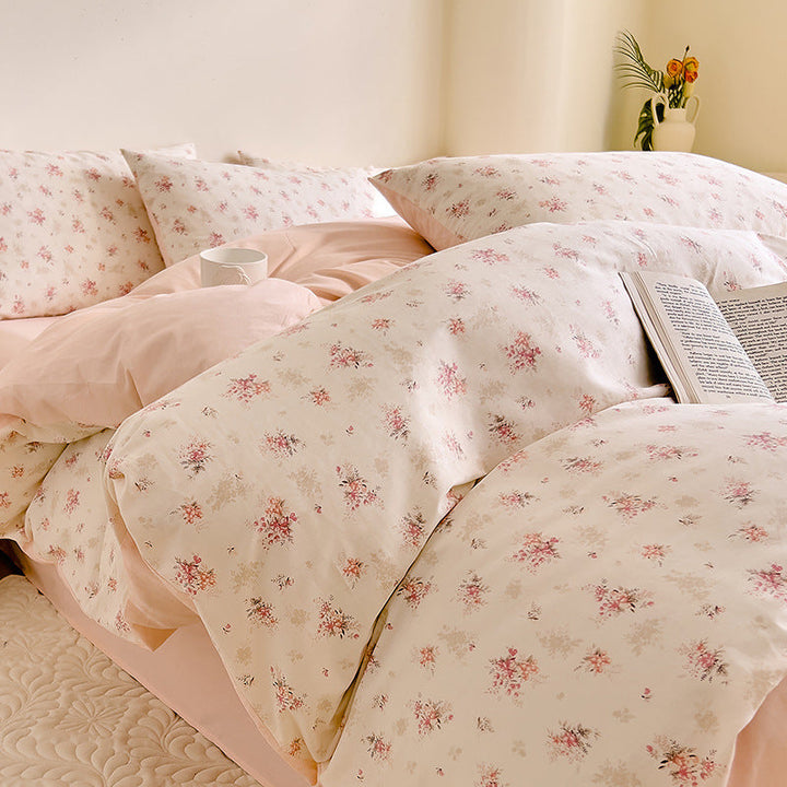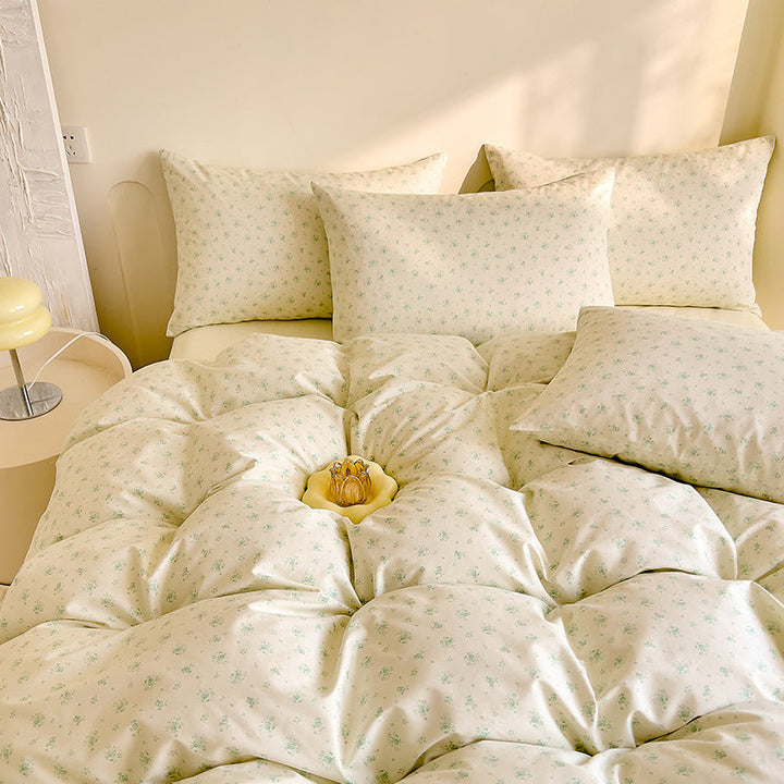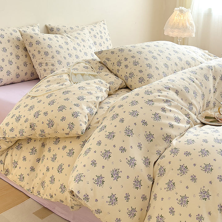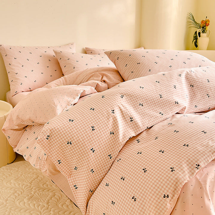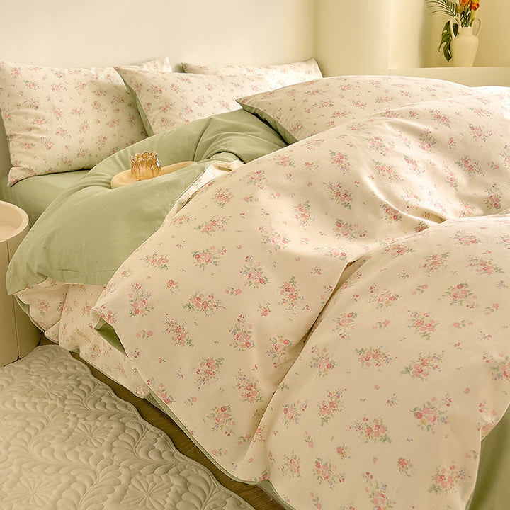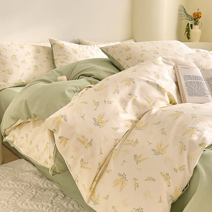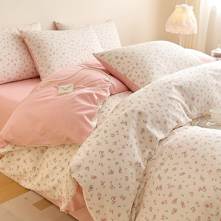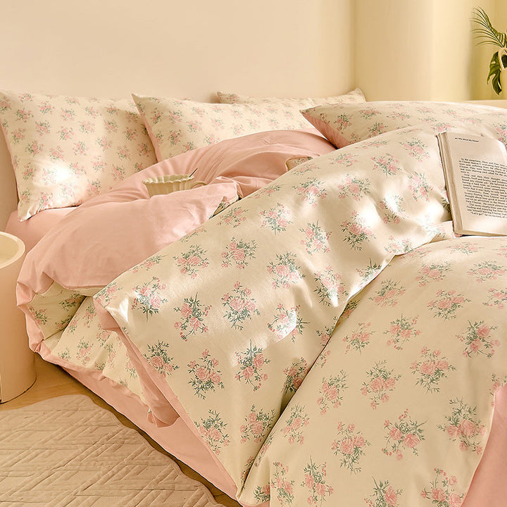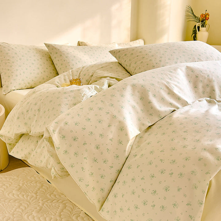 Small fresh cotton floral four-piece set Korean college student dormitory three-piece set pure cotton bed sheet quilt cover bedding wholesale