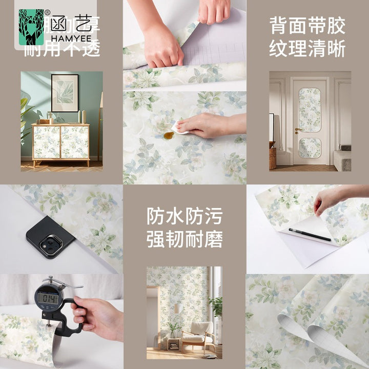 Small fresh flower leaf wallpaper PVC living room bedroom ins sticker plant flower wall decoration wall sticker self sticker