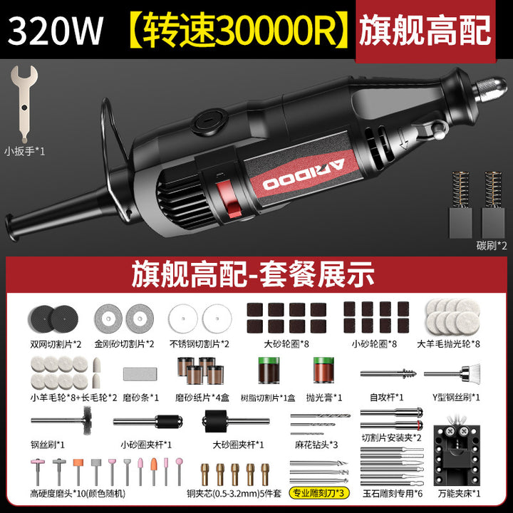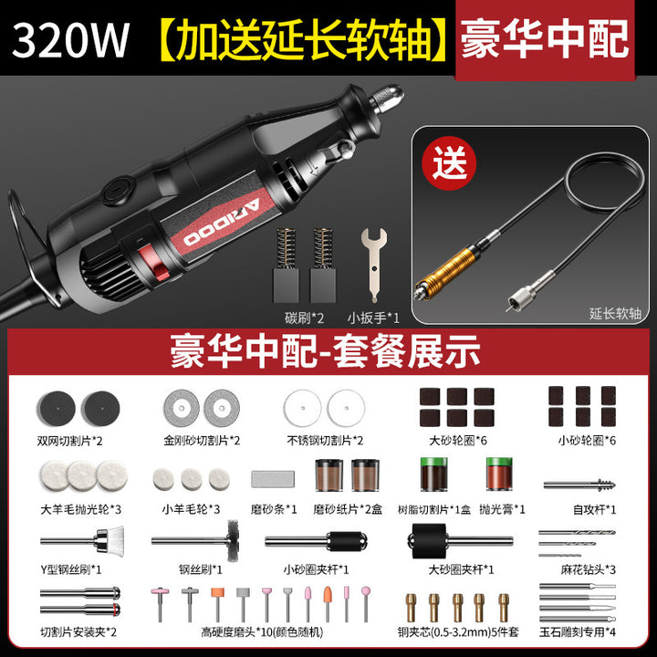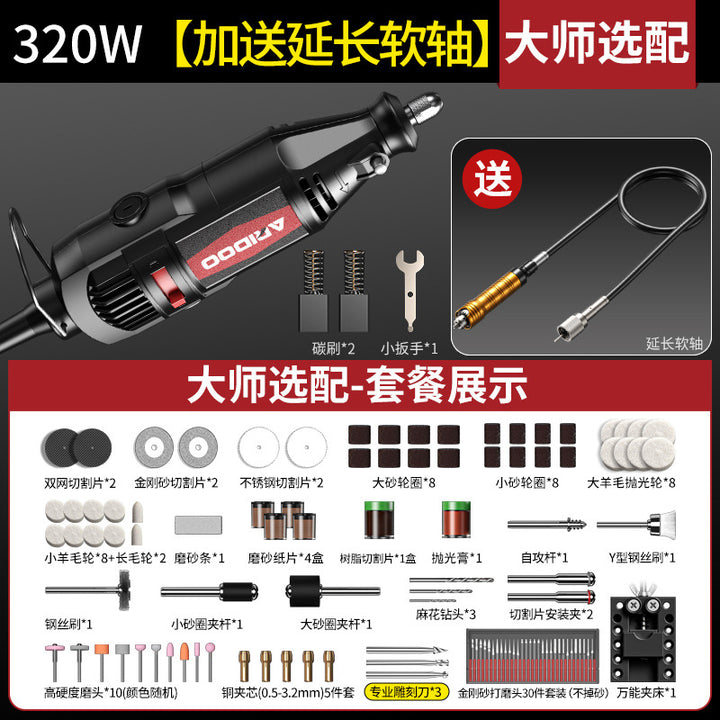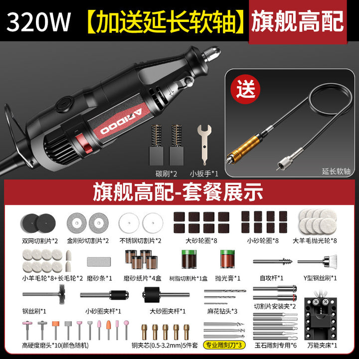 320W factory simple matching [speed 32000R] stepless speed regulation, 320W entry-level simple configuration [speed 32000R] stepless speed regulation, 320W luxury medium with [speed 32000R] stepless speed regulation, 320W flagship high-end [speed 32000R] stepless speed regulation, 320W master optional [speed 32000R] stepless speed regulation, 320W all-round top match [speed 32000R] stepless speed regulation, 320W entry-level simple matching [additional extension flexible shaft] Say goodbye to tired hands and sour hands, 320W luxury medium with [additional extension flexible shaft] work easier, 320W flagship high-end [additional extension flexible shaft] speed can be controlled at will, 320W master optional [additional extension flexible shaft] German technical Seiko bearings, 320W all-round top match [additional extension flexible shaft] can be done in one machine., 460W factory simple match [6.5MM precision three-jaw chuck] 6-speed power adjustment, 460W entry-level simple match [6.5MM precision three-jaw chuck] 6-speed power adjustment, 460W luxury medium with [6.5MM precision three-jaw chuck] 6-speed power adjustment, 460W flagship high-end [6.5MM precision three-jaw chuck] 6-speed power adjustment, 460W master optional [6.5MM precision three-jaw chuck] 6-speed power adjustment, 460W all-round top match [6.5MM precision three-jaw chuck] 6-speed power adjustment, 460W entry-level simple matching [additional extension flexible shaft] pure copper large motor, 460W Deluxe Medium with [Additional Extension Soft Shaft] Wood "Master", 460W flagship high-end [additional extension flexible shaft] stone "master", 460W master optional [additional extension flexible shaft] German technical Seiko bearings, 460W all-round top match [additional extension flexible shaft] engraving drill cutting and grinding are all done |