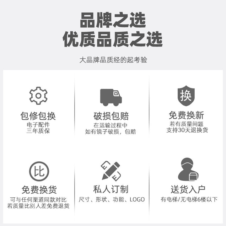 White light + no touch switch, Warm light + no touch switch, Warm white light + no touch switch, [Entry model] White light + brightness adjustment, [Entry model] Warm light + brightness adjustment, [Entry model] Warm white light + brightness adjustment, [Entry model] Three-color light + brightness adjustment, [Entry model] White light + defogging + brightness adjustment, [Entry model] Warm light + defogging + brightness adjustment, [Entry model] Warm white light + defogging + brightness adjustment, [Entry model] Three-color light + defogging + brightness adjustment, [Basic model] Time temperature + defogging + dimming, [Basic model] Bluetooth music + hour temperature + dimming, [Standard] Human body induction + defogging + dimming, [Standard] Human body induction + hour temperature + three-color light |