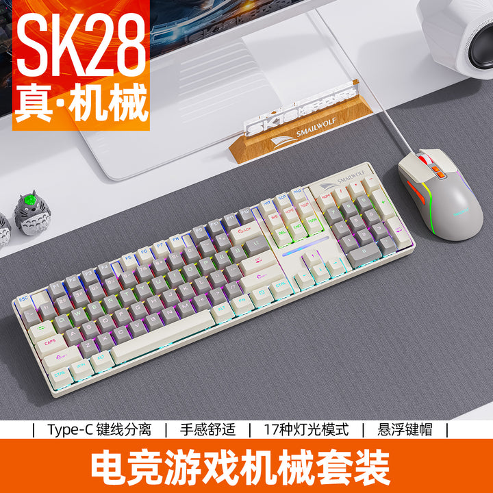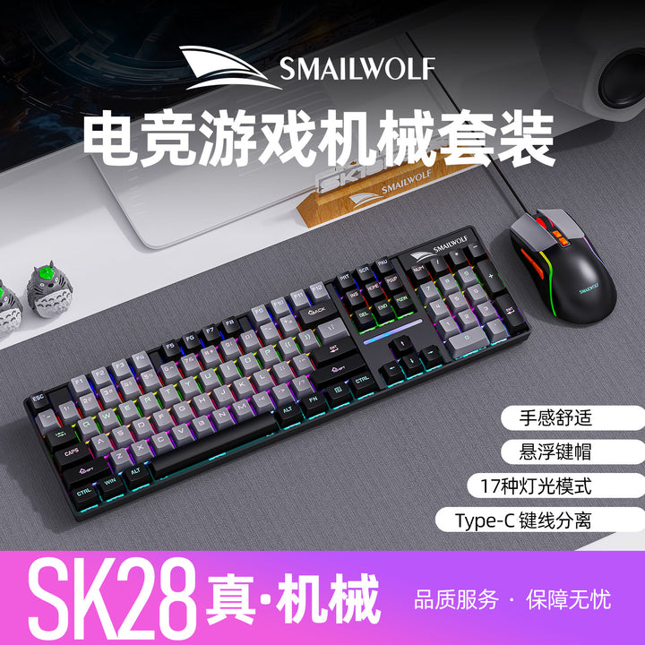 Smylang SK28 e-sports game wired mechanical keyboard Qingxi computer color matching luminous colorful keyboard and mouse set