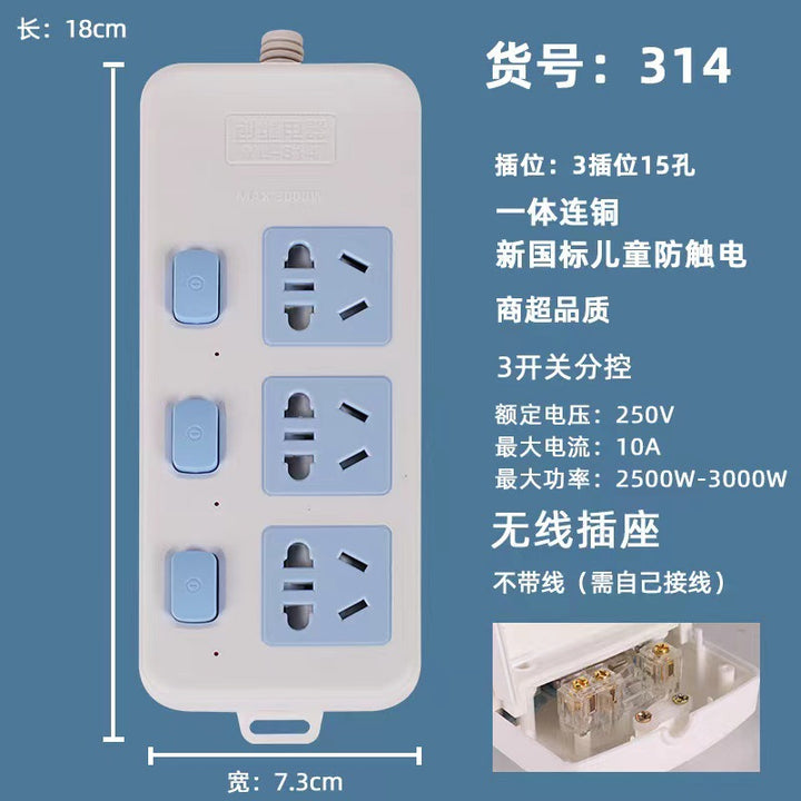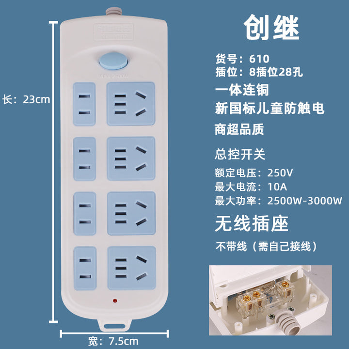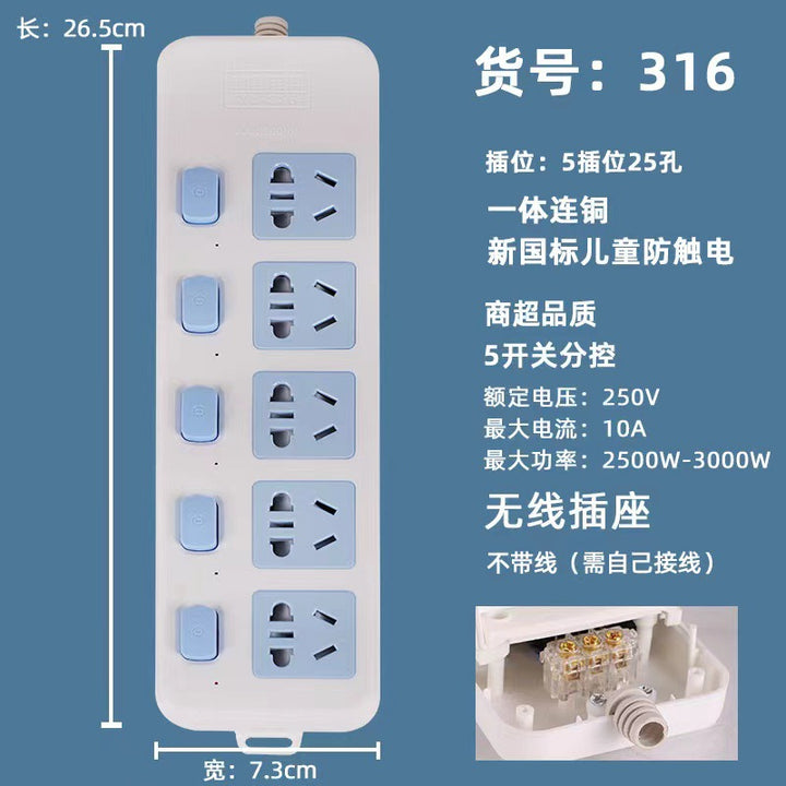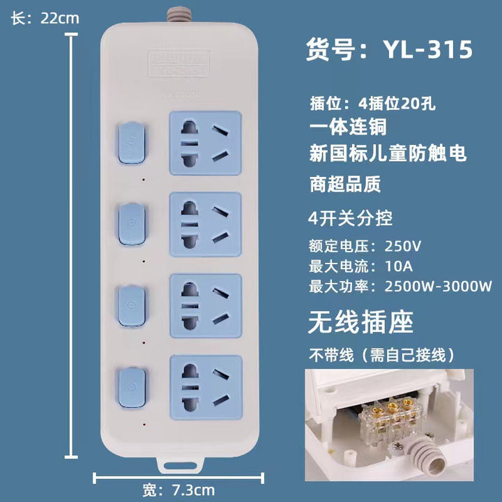 Socket with copper wire, super quality power strip, high power household porous socket manufacturers wholesale plug-in board copper core