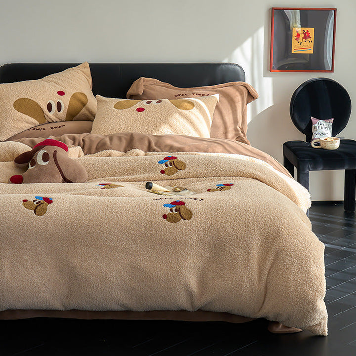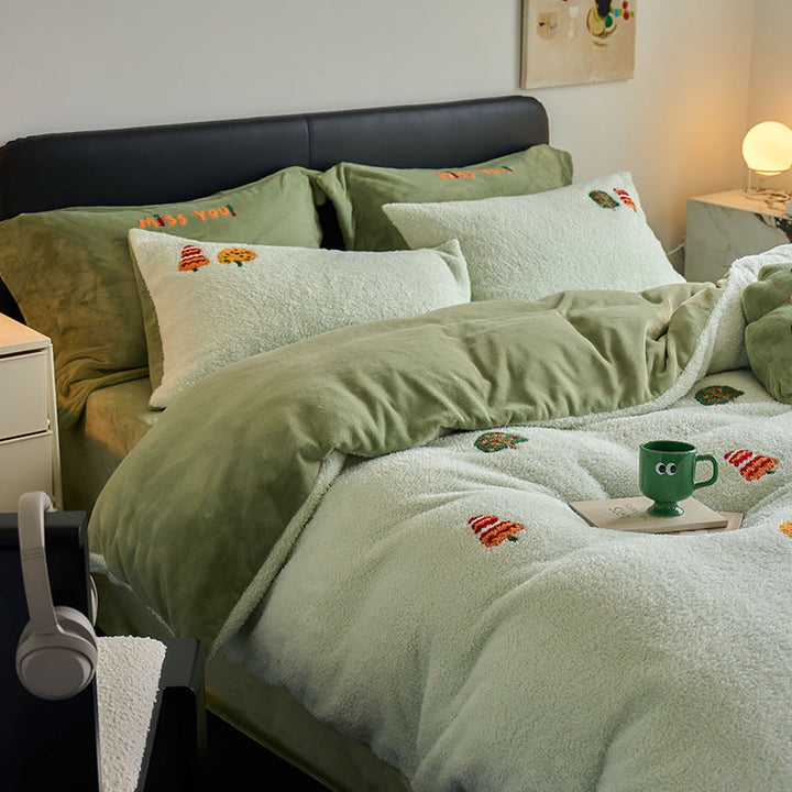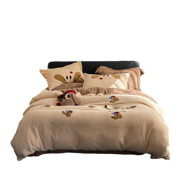 Soft glutinous~ Full-matting milk fleece four-piece set, winter thickened coral fleece children's towel embroidered quilt set three-piece set 4