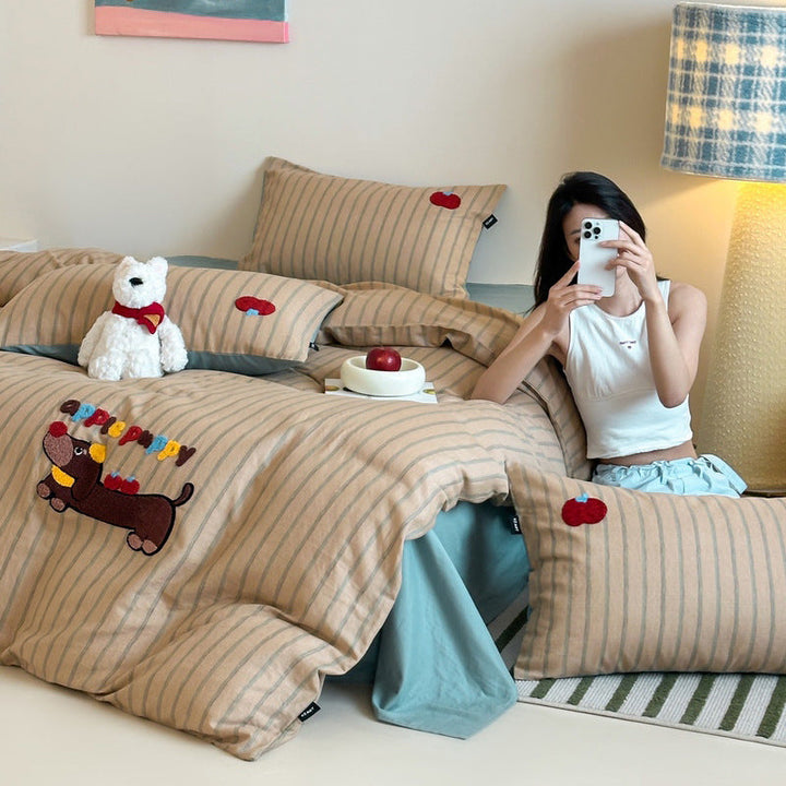 1.2m bed sheet three-piece set (suitable for 150x200 quilt core), 1.5m bed sheet four-piece set (suitable for 200 * 230 quilt core), 1.8m bed sheet four-piece set (suitable for 200 * 230 quilt core), 1.5M mattress four-piece set (quilt cover 200 * 230), 1.8 meters mattress four-piece set (quilt cover 200 * 230) |