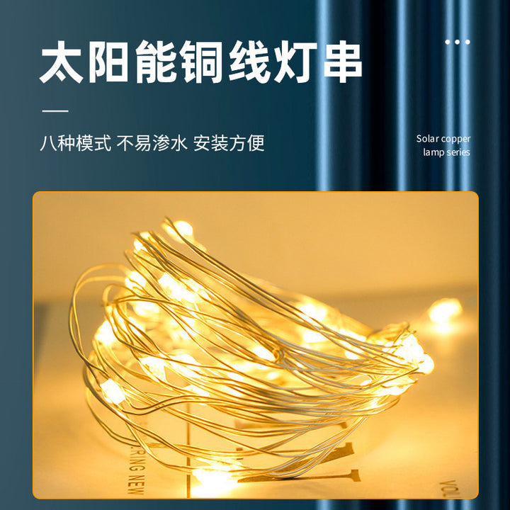Solar copper wire lamp eight functions warm white, Solar copper wire lamp eight functions white light, Solar copper wire lamp eight functions four colors, Solar copper wire light blue light, Solar copper wire light red light |