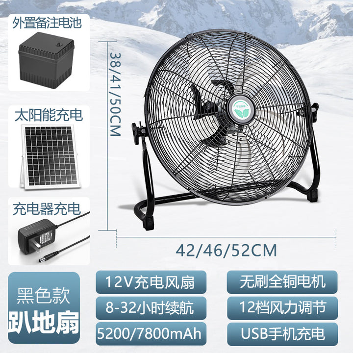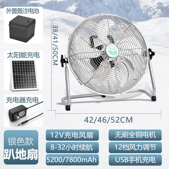 Solar fan Outdoor portable oversized battery Wireless mobile rechargeable fan Outdoor silent floor fan