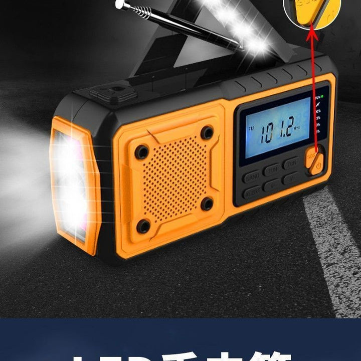 Solar hand-cranked power generation emergency multi-function AM/FM/WB radio flashlight