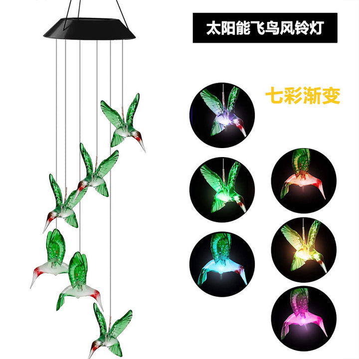 Solar wind chime light wind turn light, hummingbird solar gift light color-changing LED garden hanging light