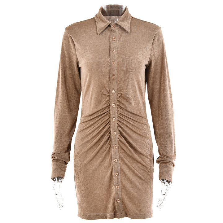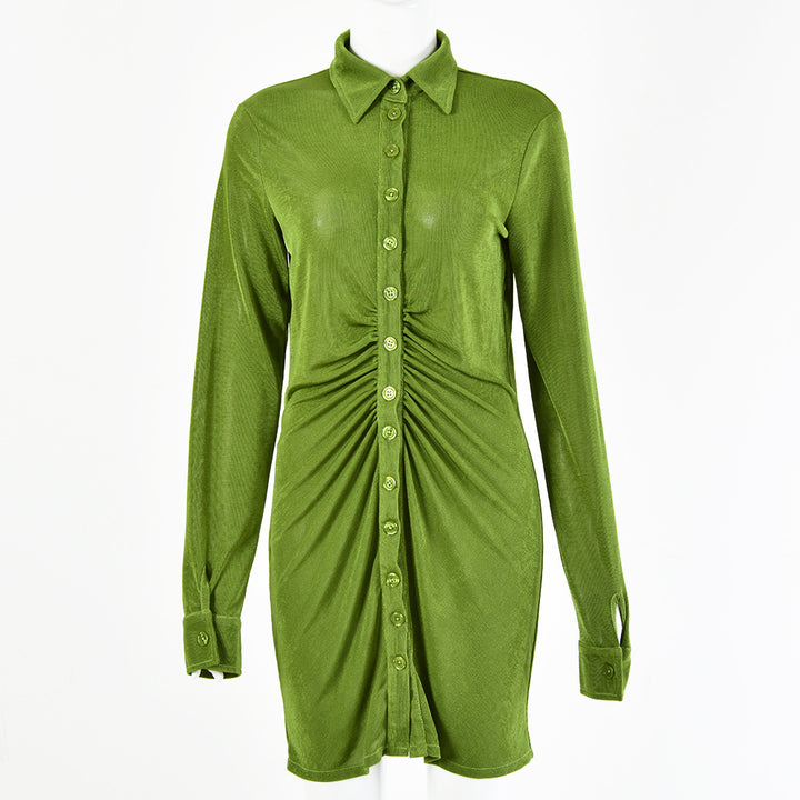 Solid color dress women's 2022 summer new European and American women's clothing Spice Girl sexy long-sleeved lapel single-breasted cardigan short ...