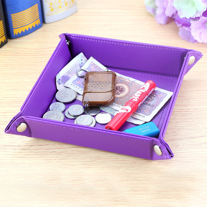 Solid color leather storage tray, desktop small change tray, office desktop finishing box, household daily PU storage box wholesale