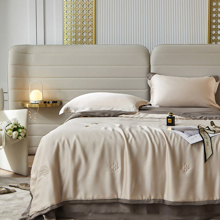 Solid color light luxury Lenzing Tencel summer cool quilt four-piece Lyocell fiber summer cool ice silk air conditioner quilt