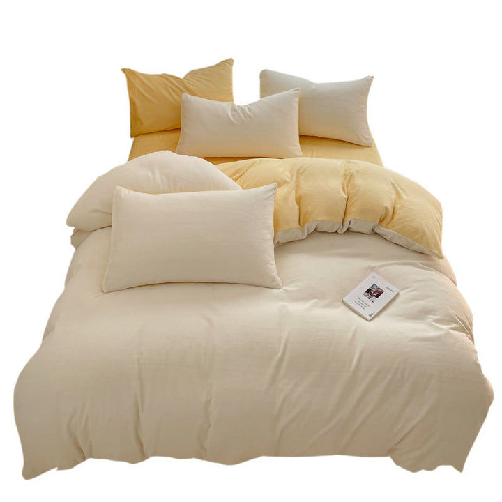Solid color milk fleece four-piece set, winter thickened coral fleece bed sheet quilt cover, Nantong flannel bed three-piece set