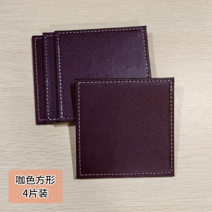 Solid color PU exquisite leather coaster creative furniture hotel waterproof and thermal insulation coffee mat teacup mat can be printed LOGO