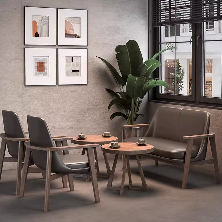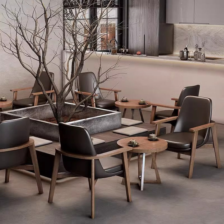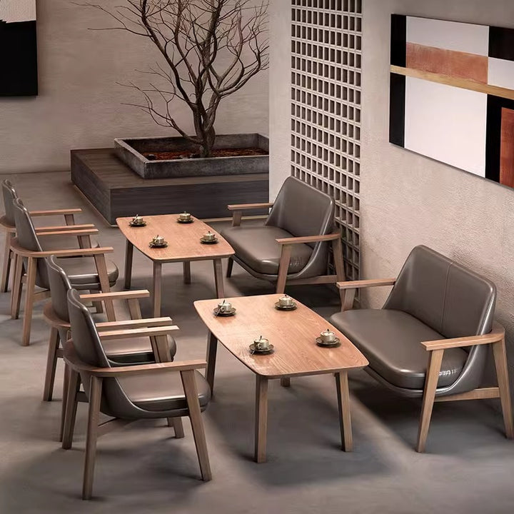Solid wood catering book bar milk tea shop coffee shop table and chair sofa combination simple leisure area wabi sandy wind table and chair