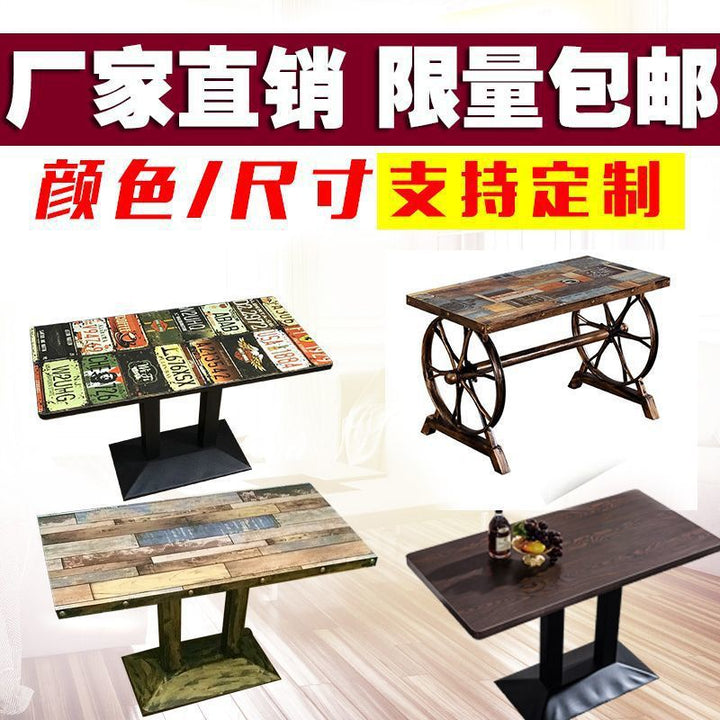 Solid wood catering commercial milk tea burger shop table and chair set fast food restaurant snail noodle shop table dining table stool