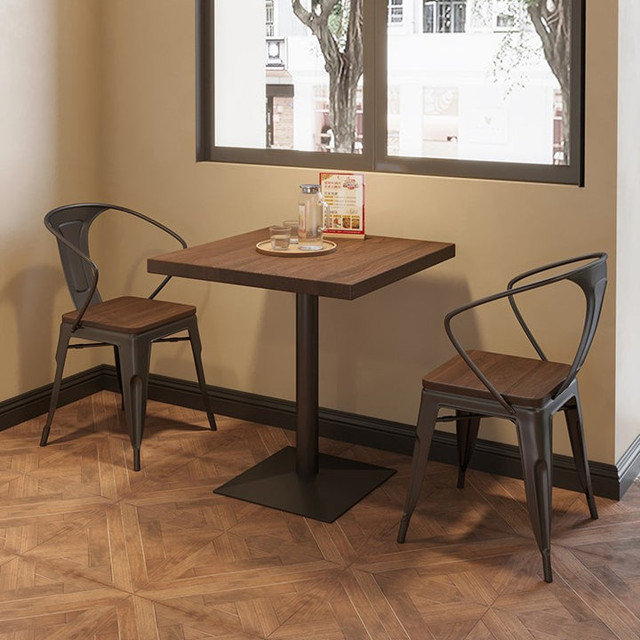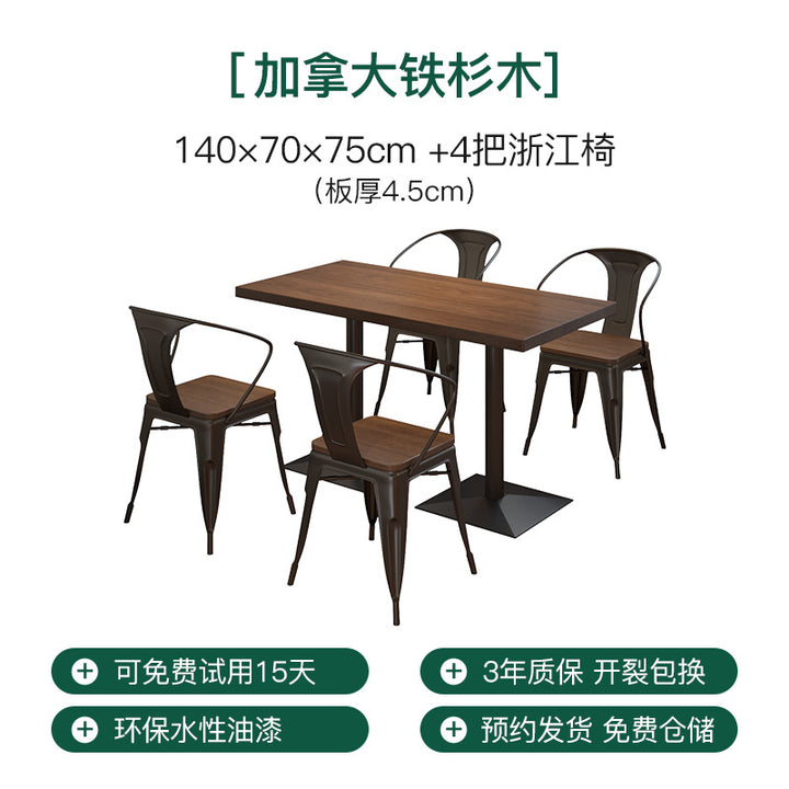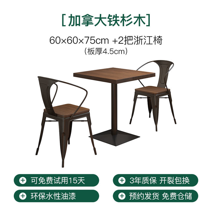 Solid wood clear bar dining table and chair combination dining burger dessert shop square double small square single leg table 1016