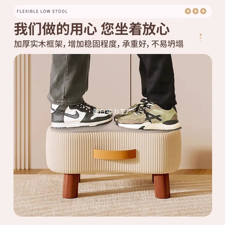 Solid wood color small stool household shoe changing stool living room sofa pedal stool coffee table small low stool soft bag shoe stool small board