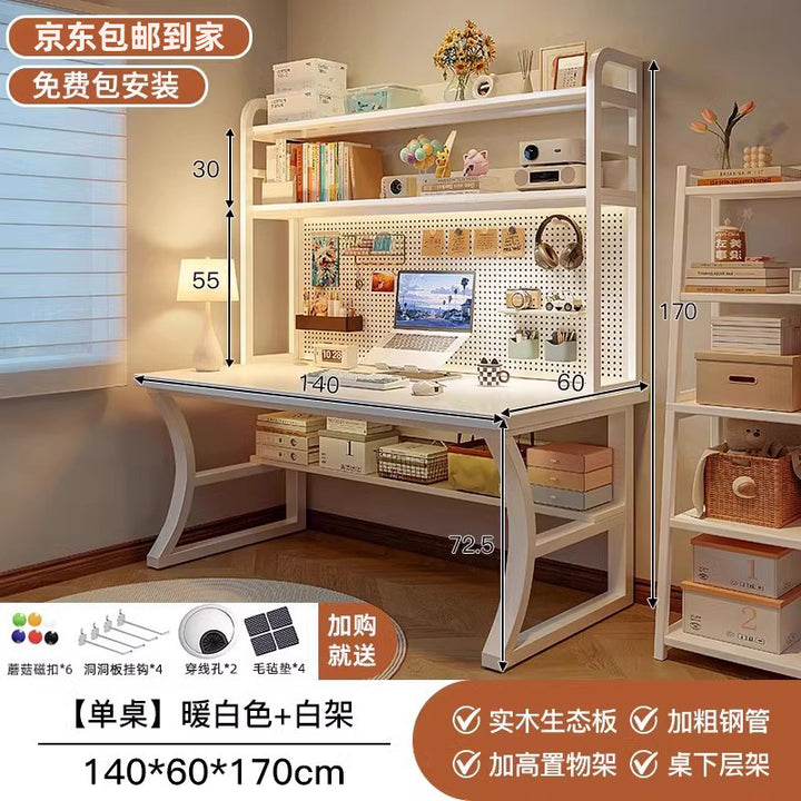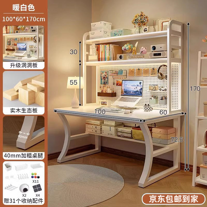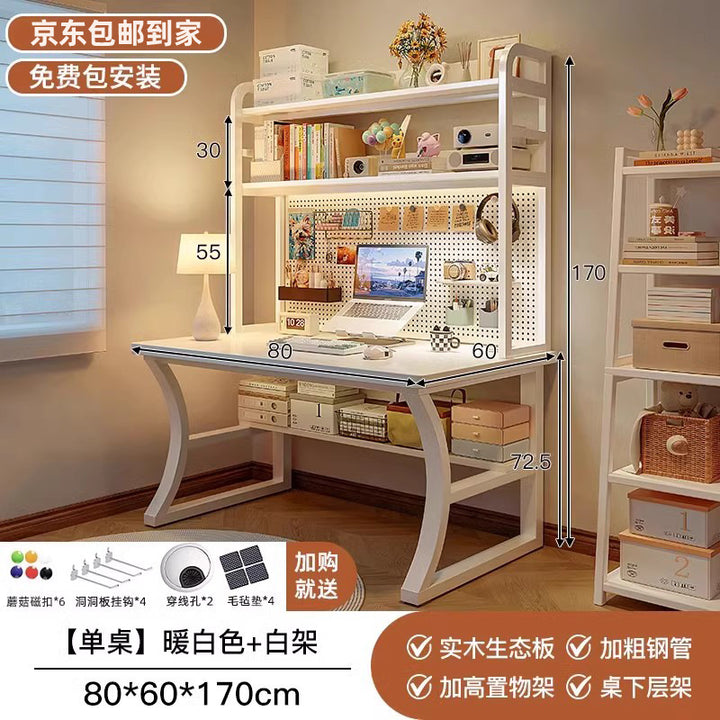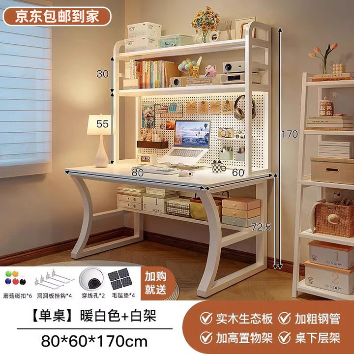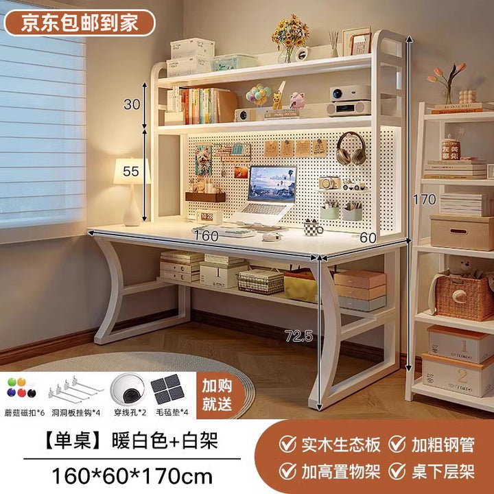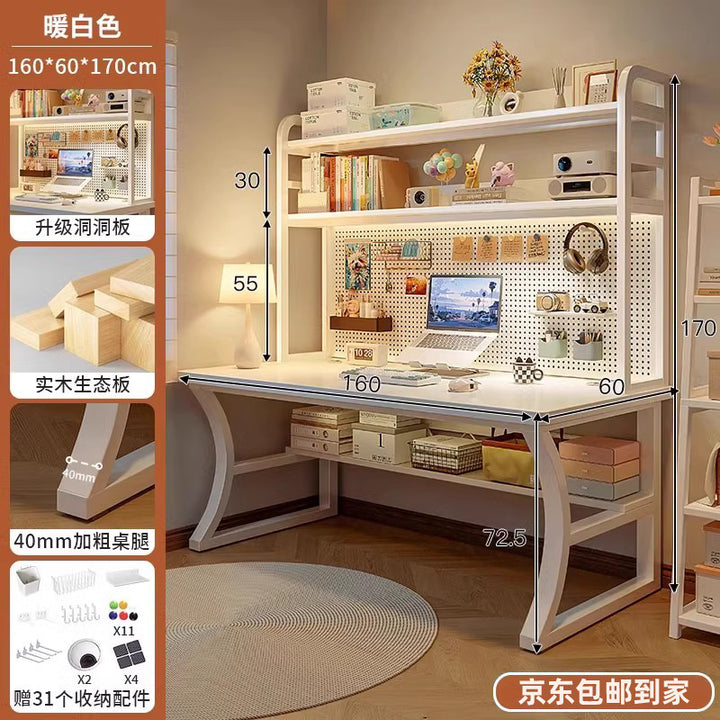 Solid wood desk bookshelf integrated with hole board computer desk home bedroom desk student learning writing desk
