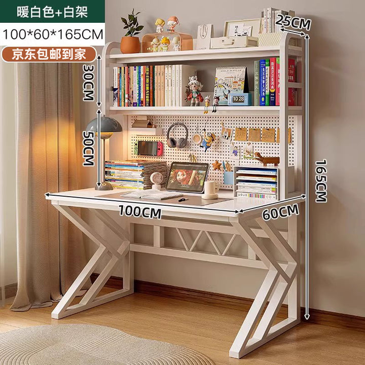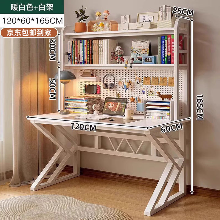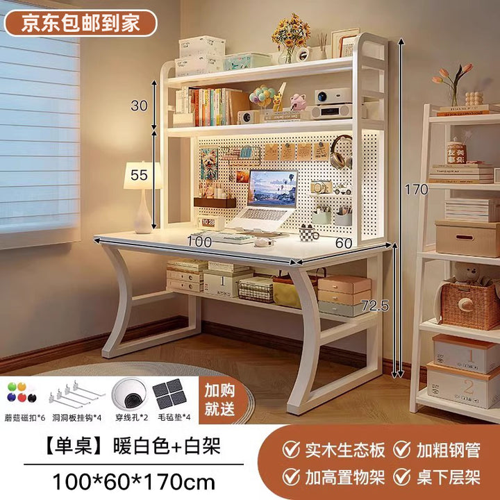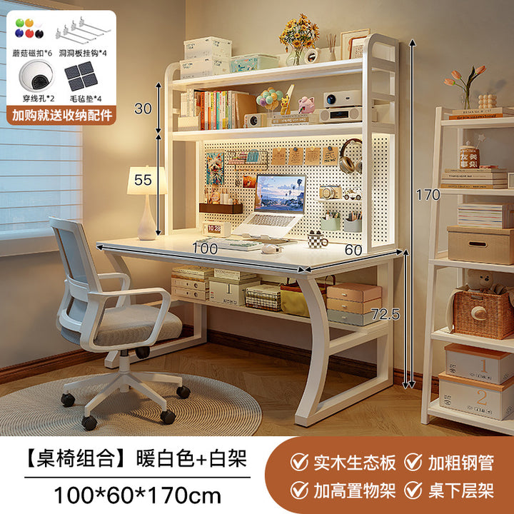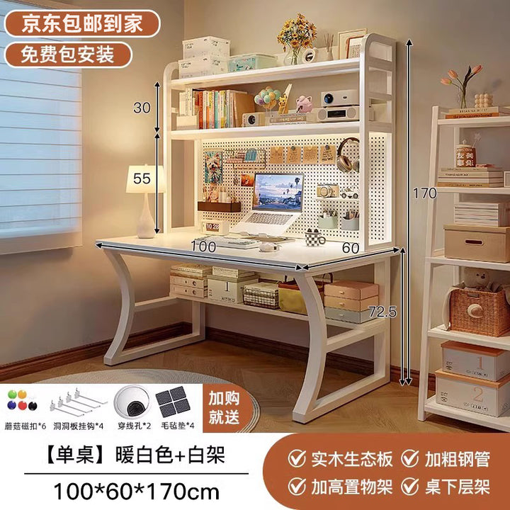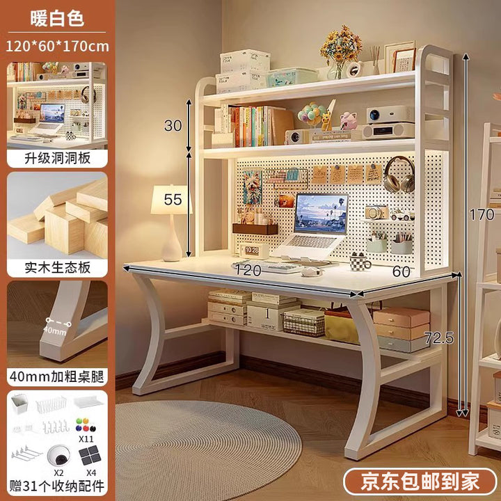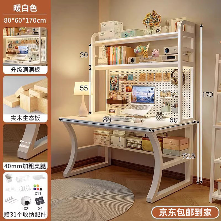 Solid wood desk bookshelf integrated with hole board computer desk home bedroom desk student learning writing desk