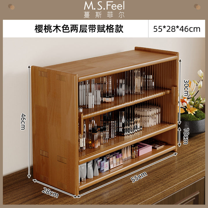 Solid wood desktop cosmetics storage box rack countertop sundries storage cabinet desk figure display finishing cabinet