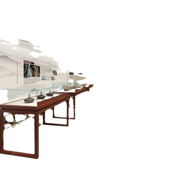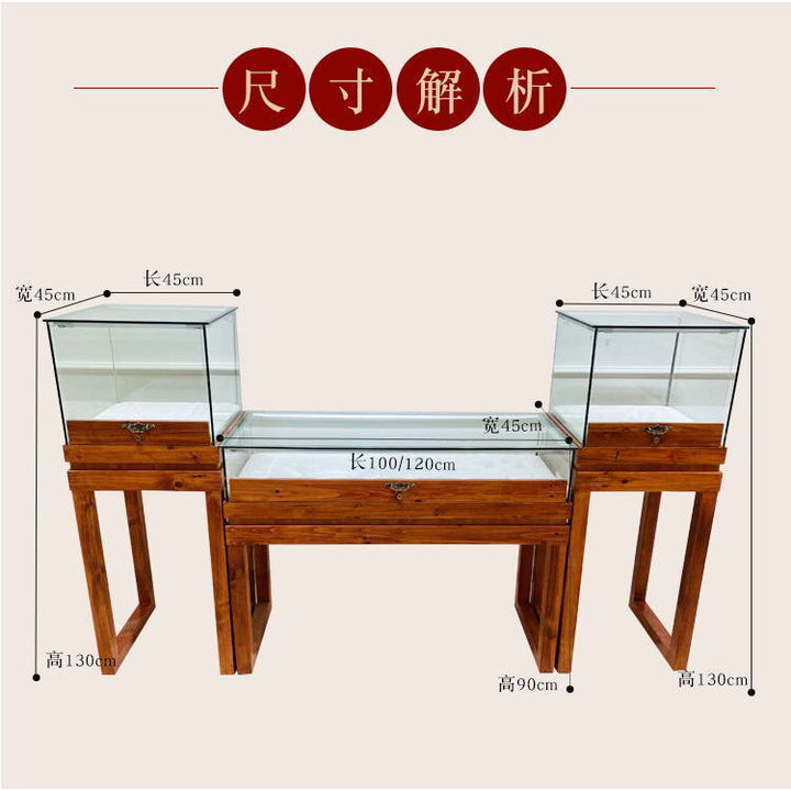 Solid wood jewelry display cabinet glass transparent retro Chinese paint exhibition counter antique jade jewelry display stand