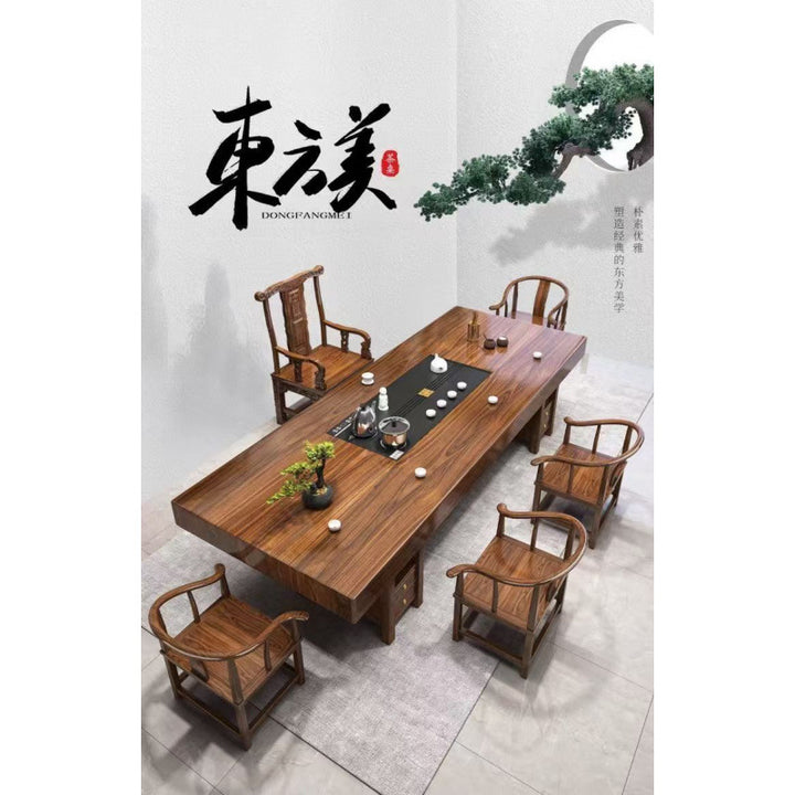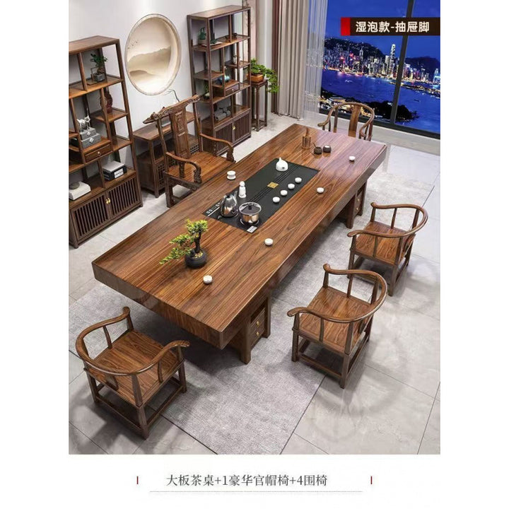 Solid wood large board tea table table and chair combination Chinese style home tea table tea making office log tea table a complete set