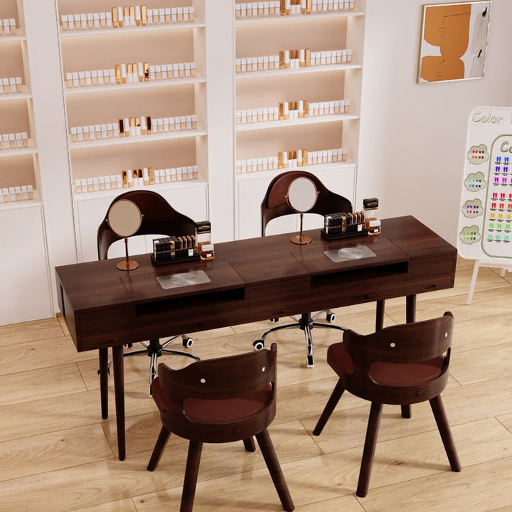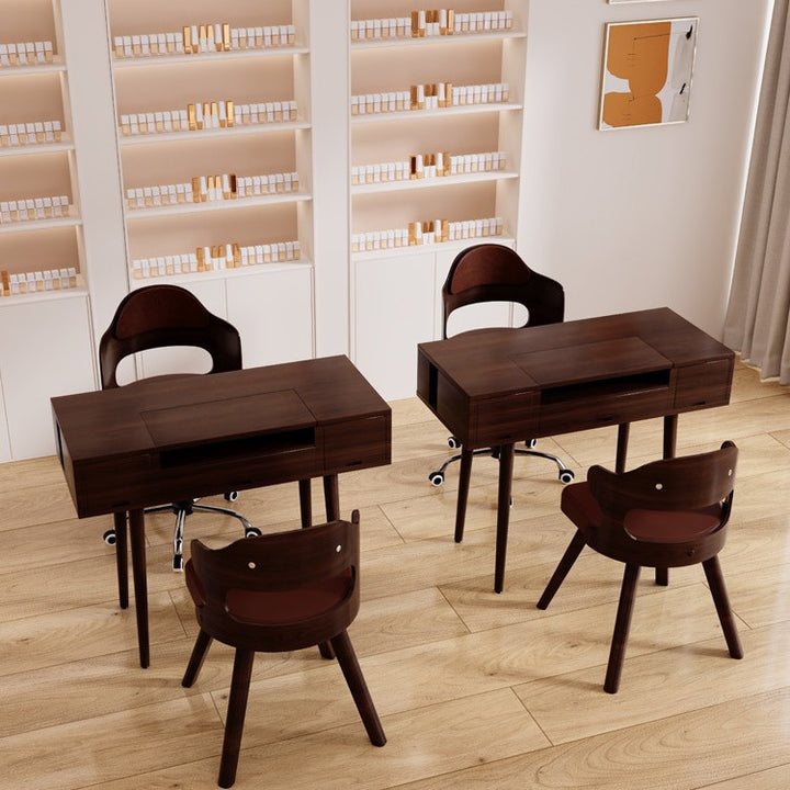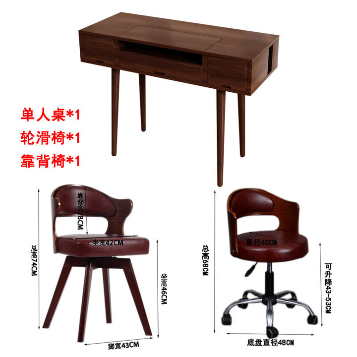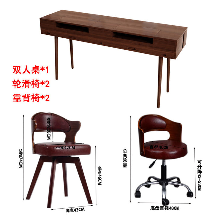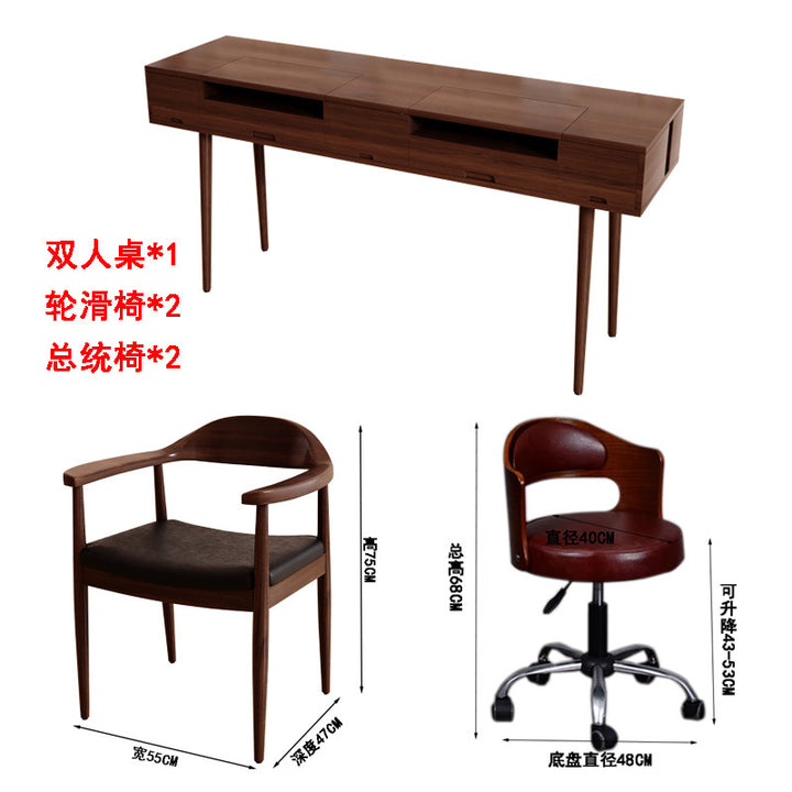 Solid wood manicure table and chair set American walnut manicure table single double simple v...