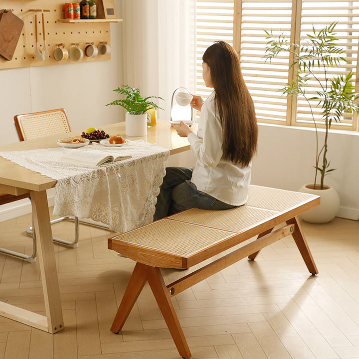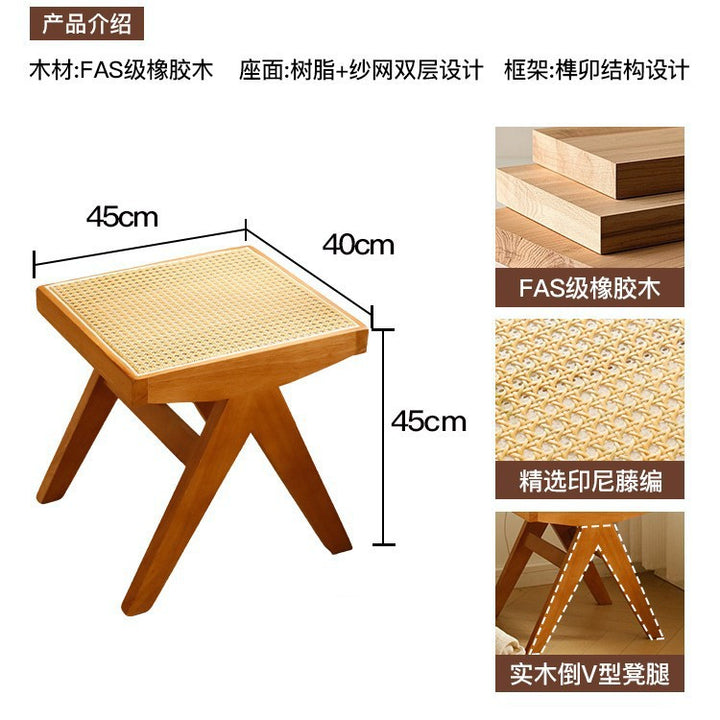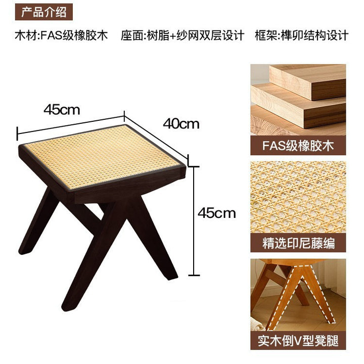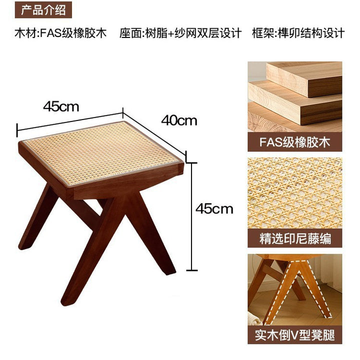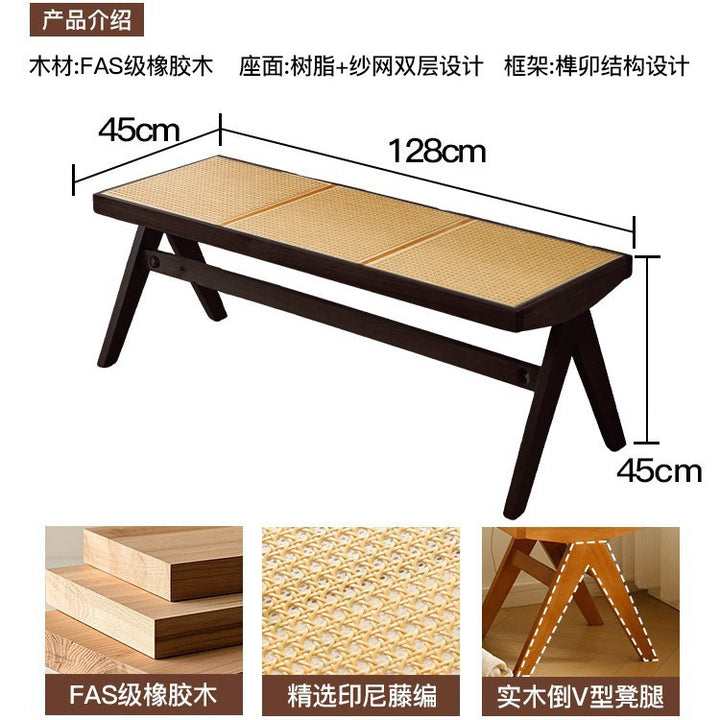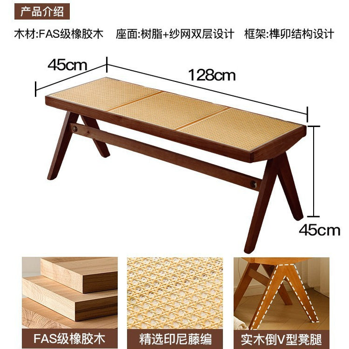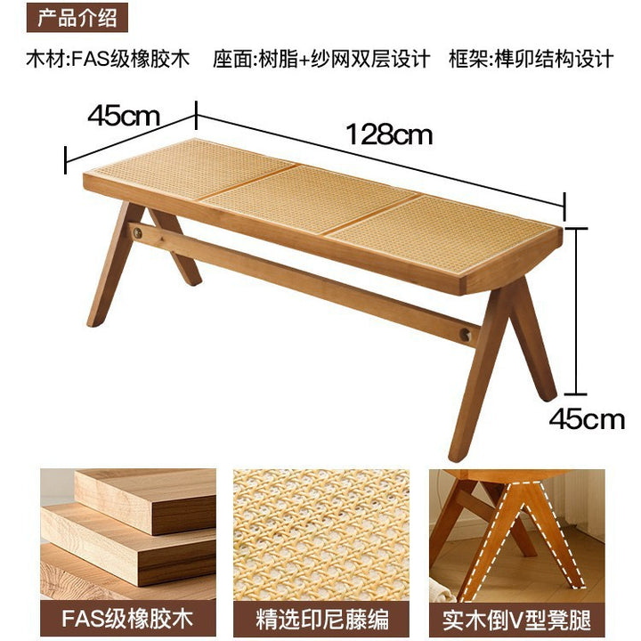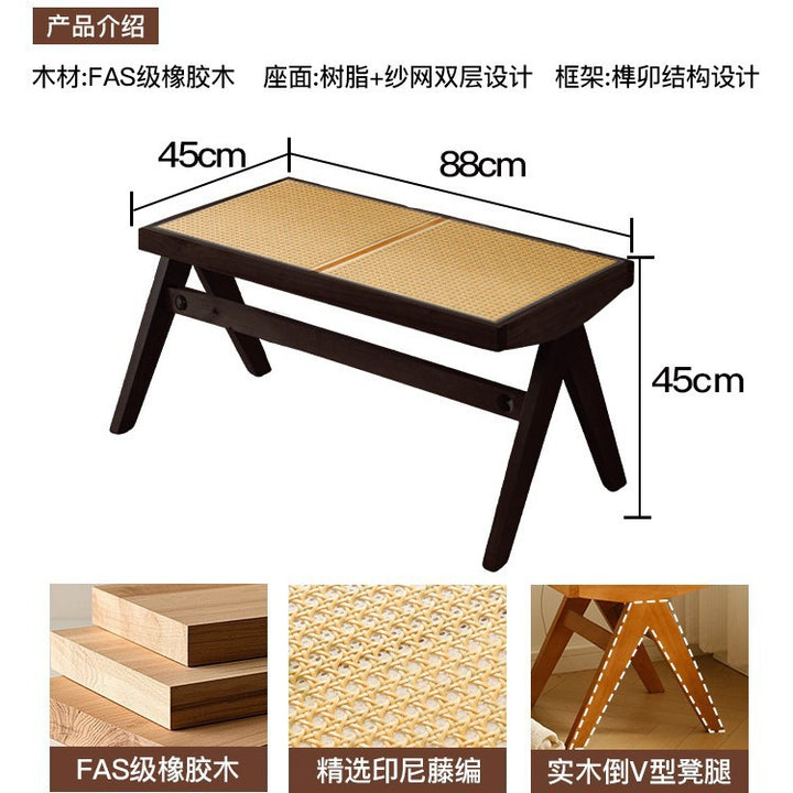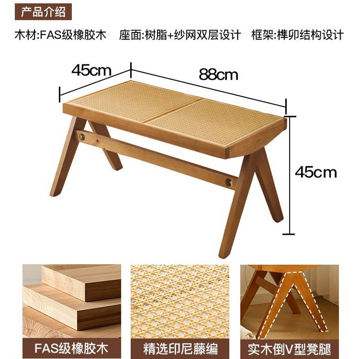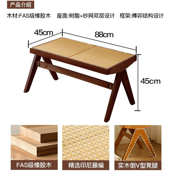 Solid wood shoe stool door can sit Internet celebrity rattan bench in the ancient style home wear shoes stool light luxury high sense