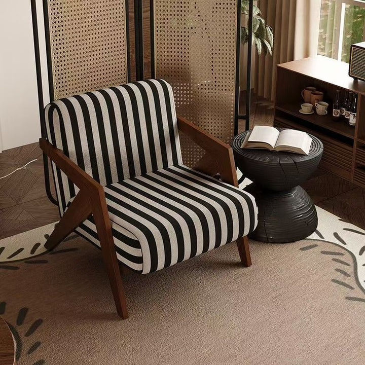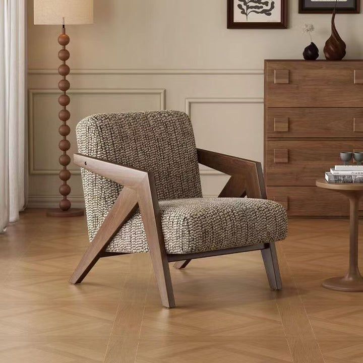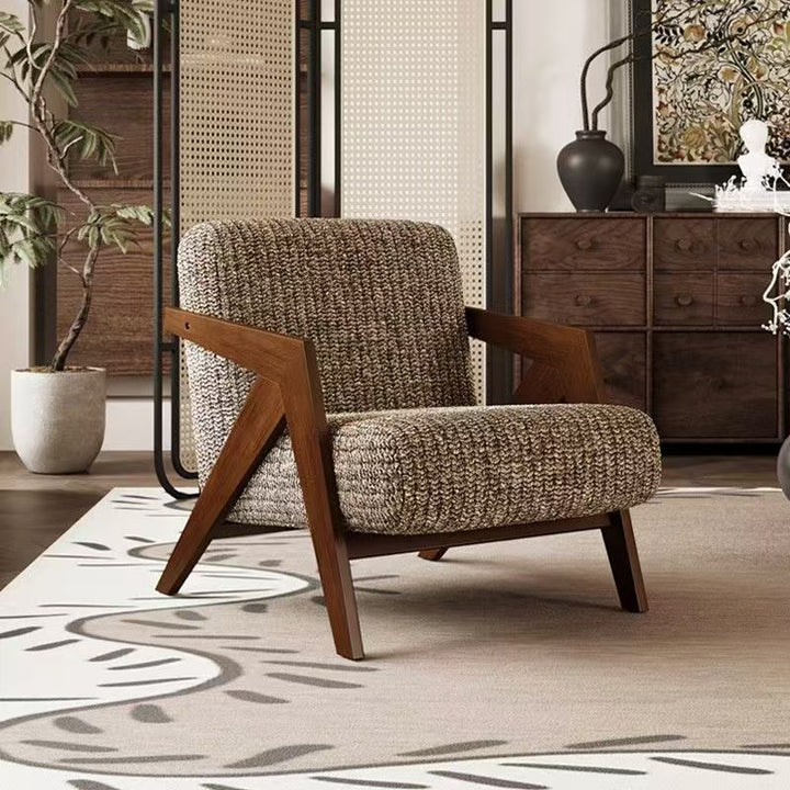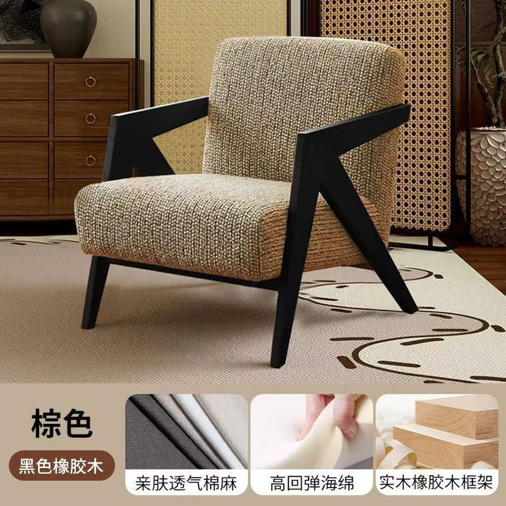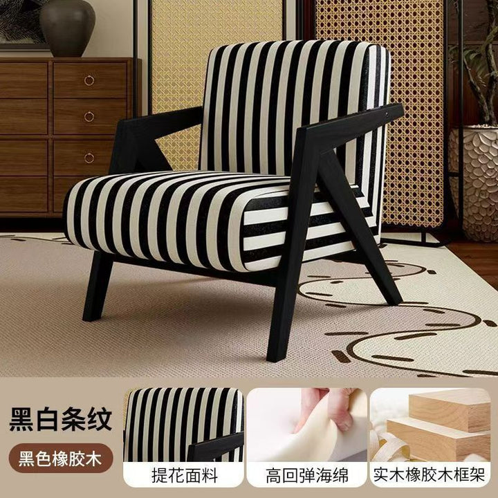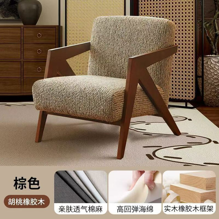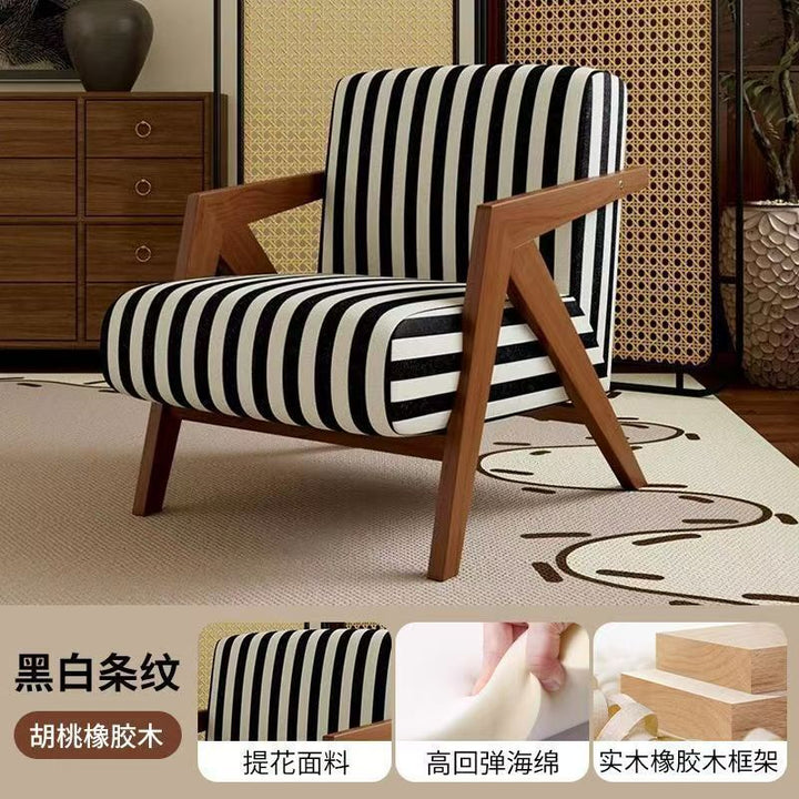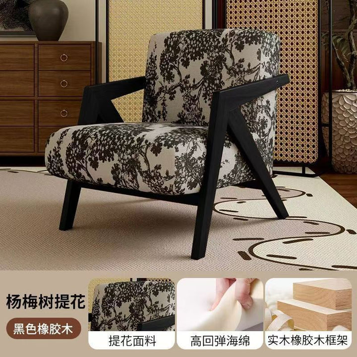 Solid wood single sofa French designer Richard chair Lazy fabric Chinese antique living room balcony Leisure chair