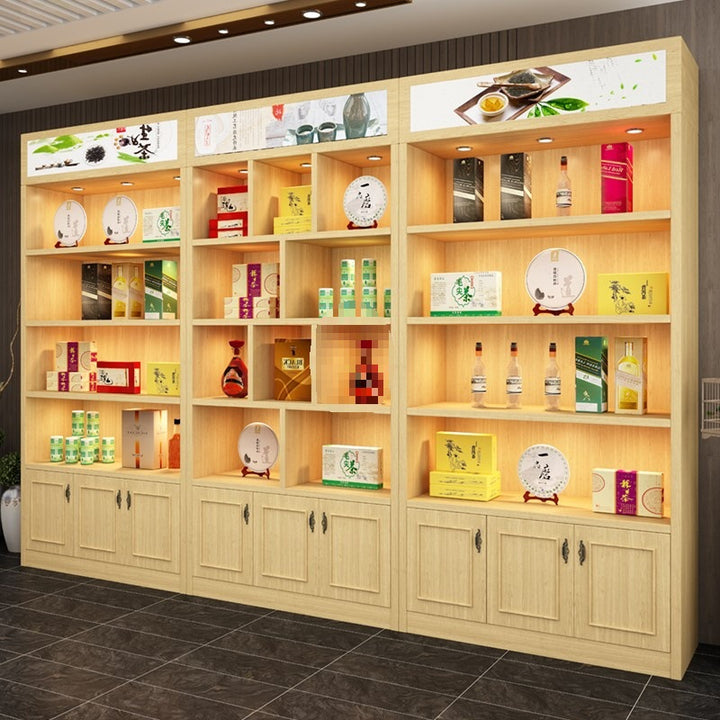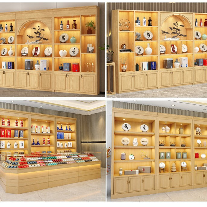 Solid wood tea display cabinet, tobacco and wine cabinet, supermarket convenience store, native products display cabinet, dry goods, agricultural p...