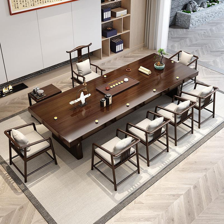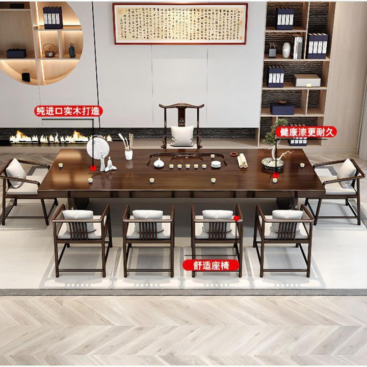 Solid wood tea table and chair combination New Chinese-style living room complete set Large b...