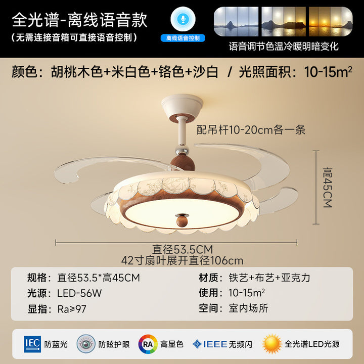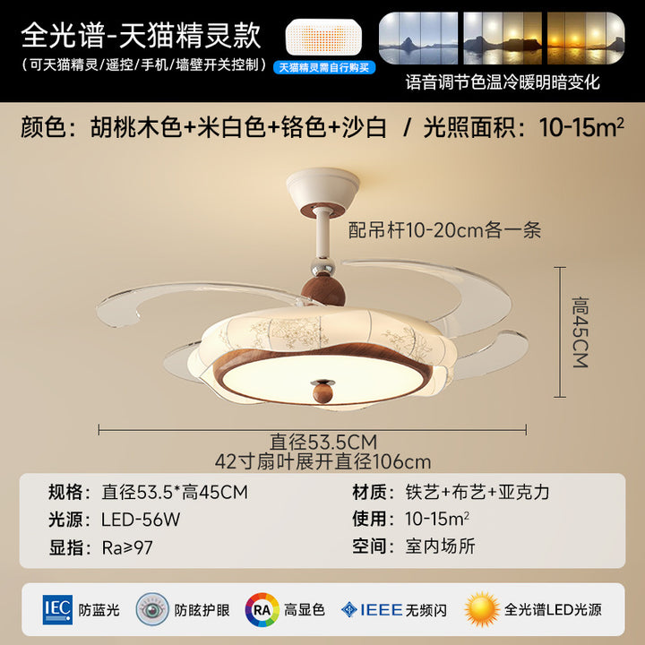 Song aesthetic fan light dining room bedroom retro walnut color living room invisible electri...