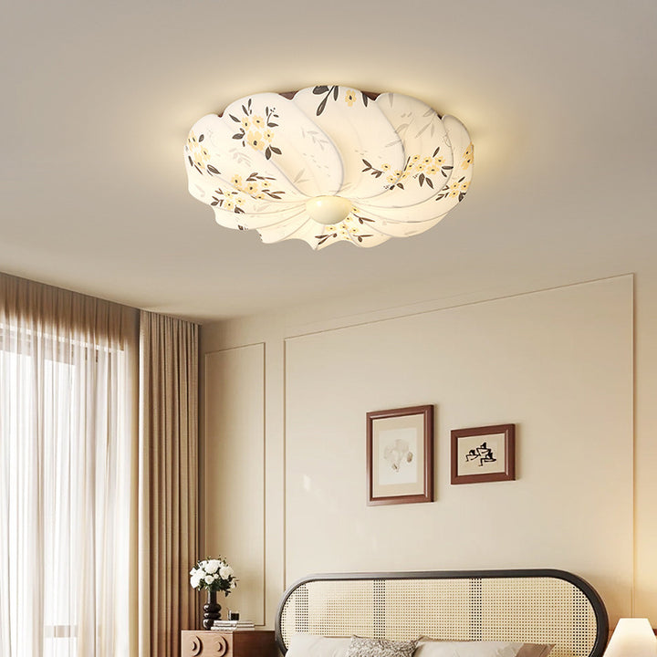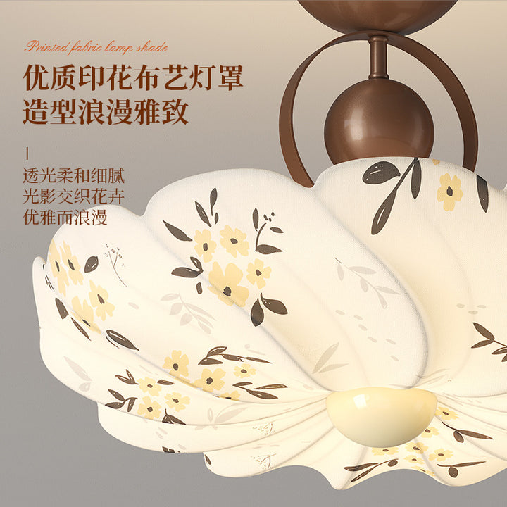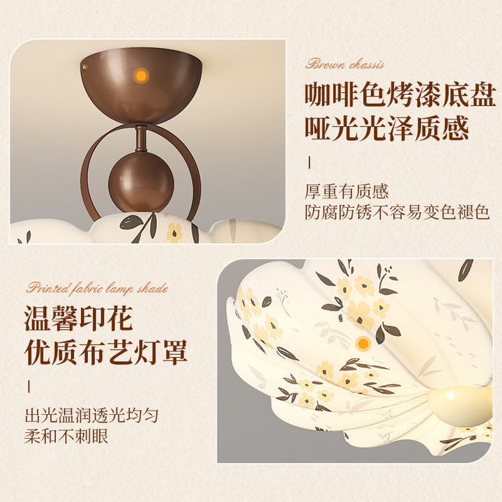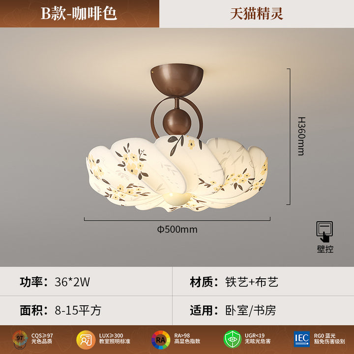 Song Dynasty aesthetic fabric bedroom lamp, medieval ceiling lamp, living room floral new Chi...