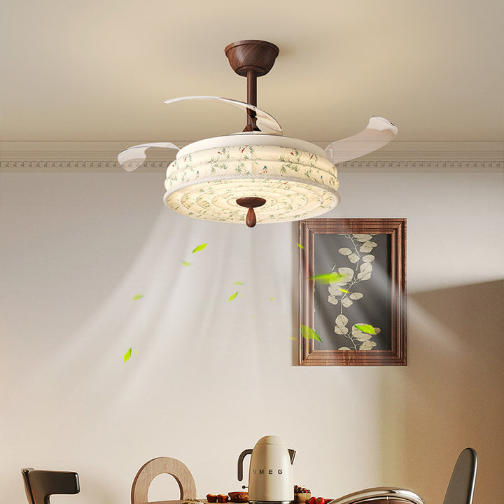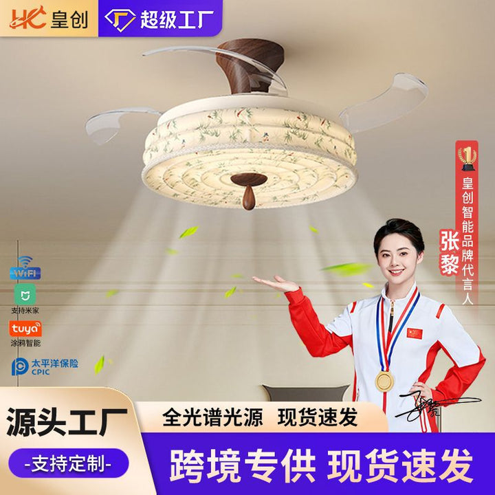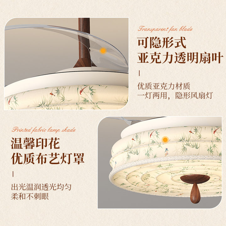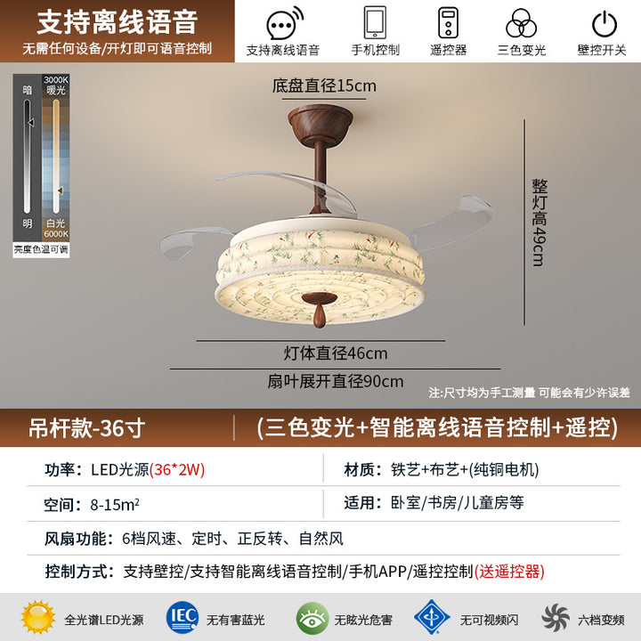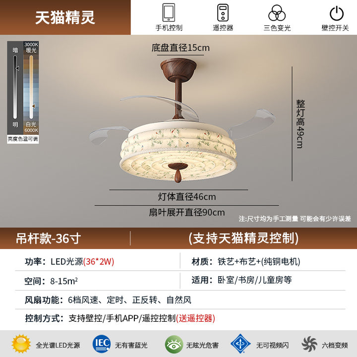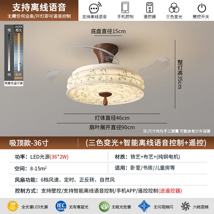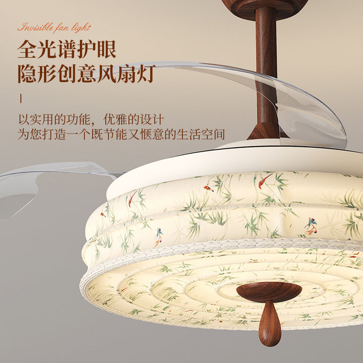 Song-style aesthetics silent fan light high wind invisible ceiling fan light bedroom antique fabric restaurant light electric fan light