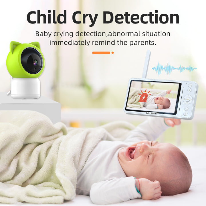 Source factory 5-inch screen baby monitor temperature and humidity detection crying alarm cam...