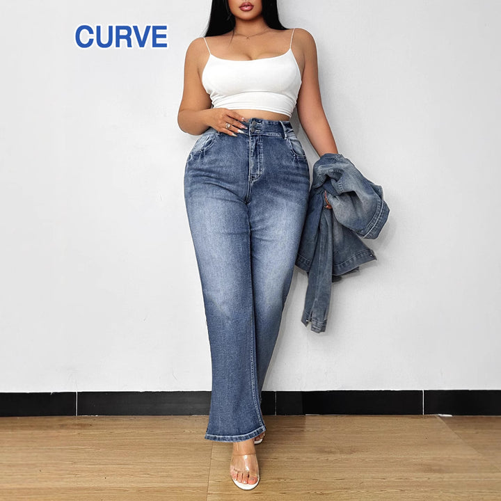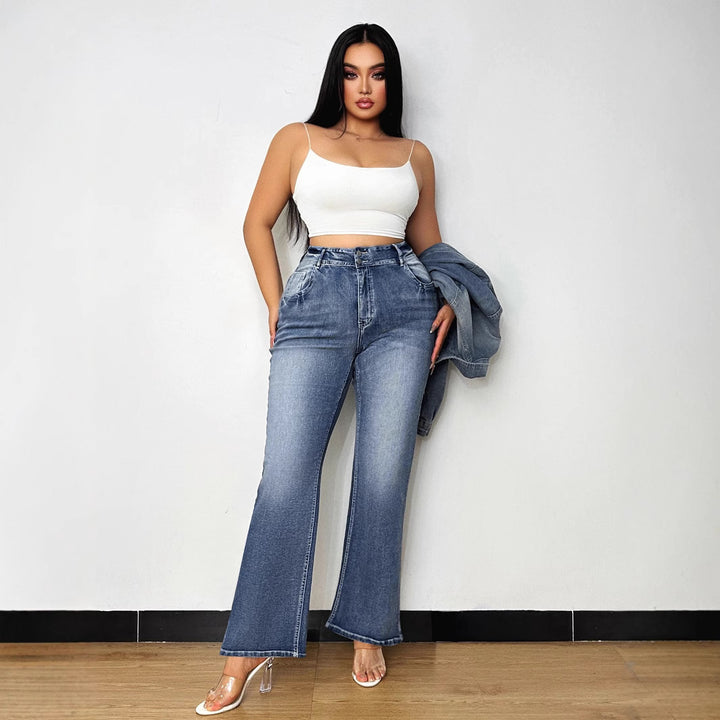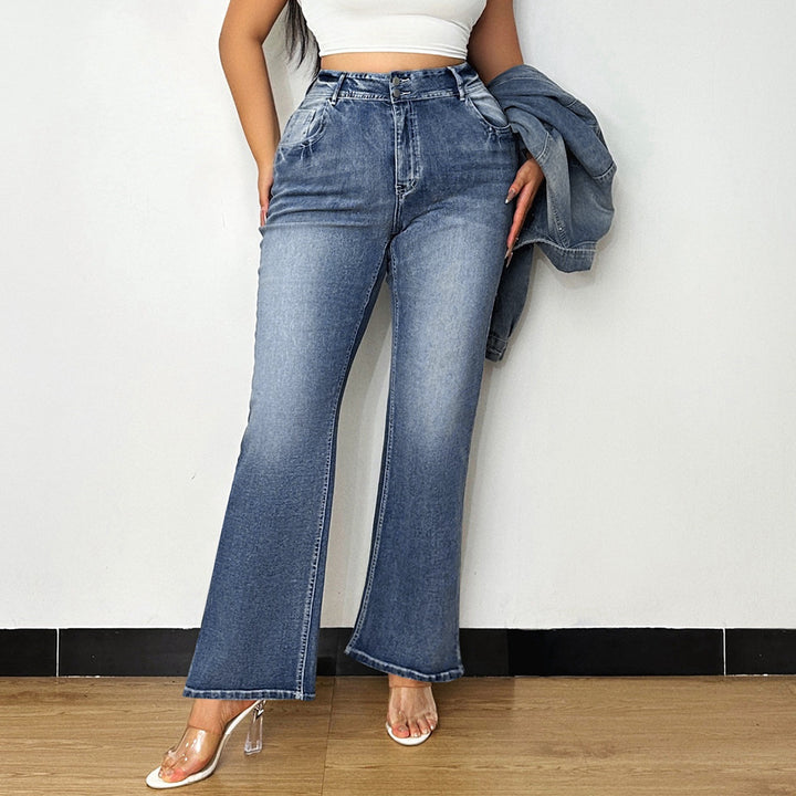 Source factory American high-waisted micro-pull jeans women's new retro washed loose and thin flared floor-mopping pants