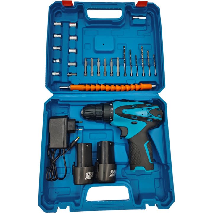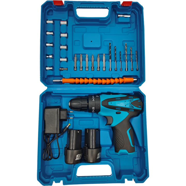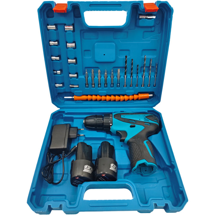 Source factory direct sales 12v small steel cannon lithium battery electric drill set construction site home decoration two-speed impact electric d...
