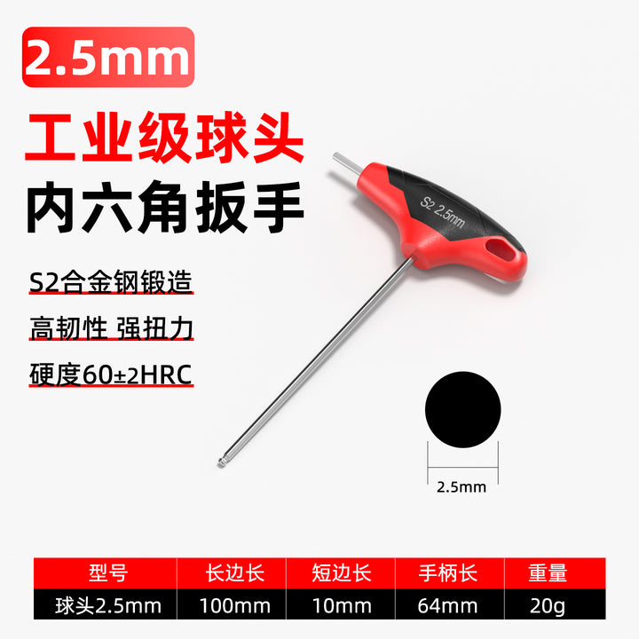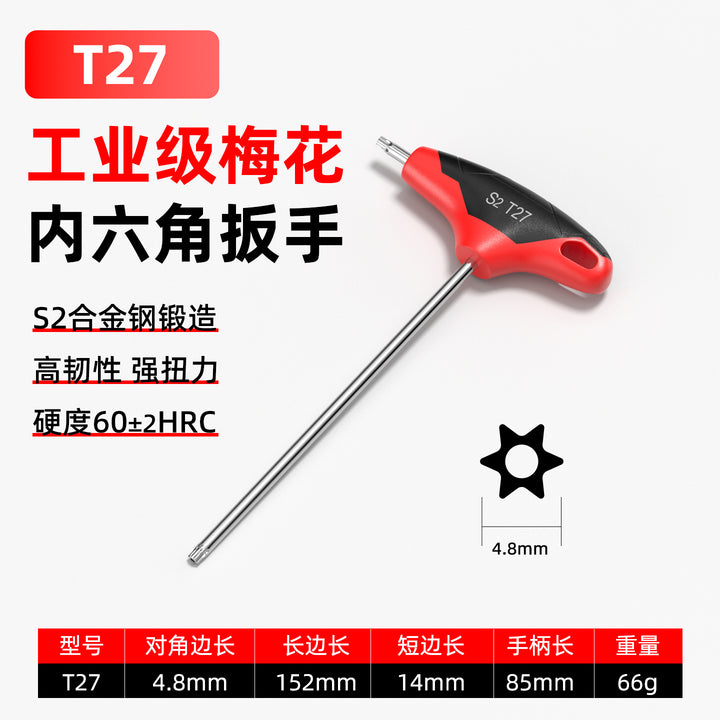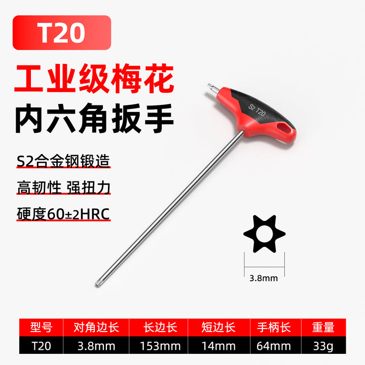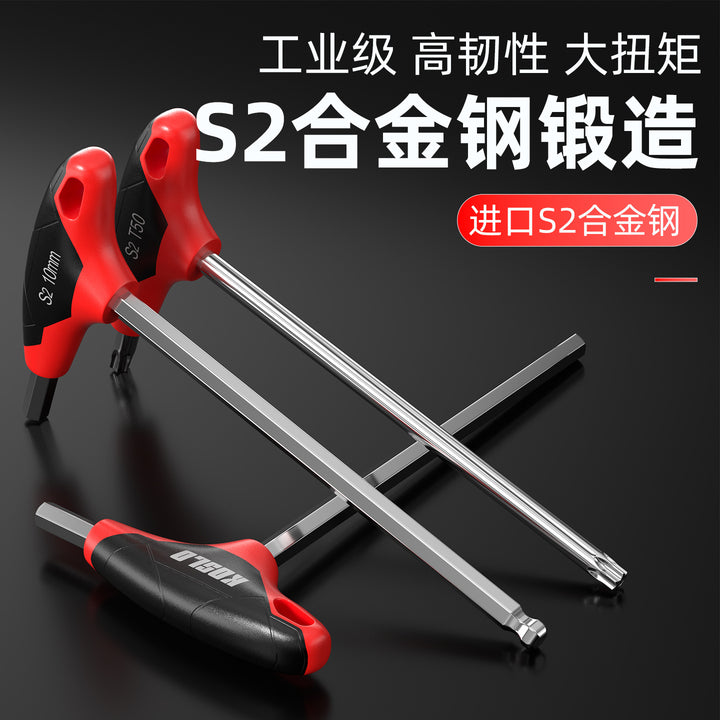 Source Factory T-shaped hexagon wrench S2 extended plum blossom flat head ball head hexagon screwdriver double head wrench