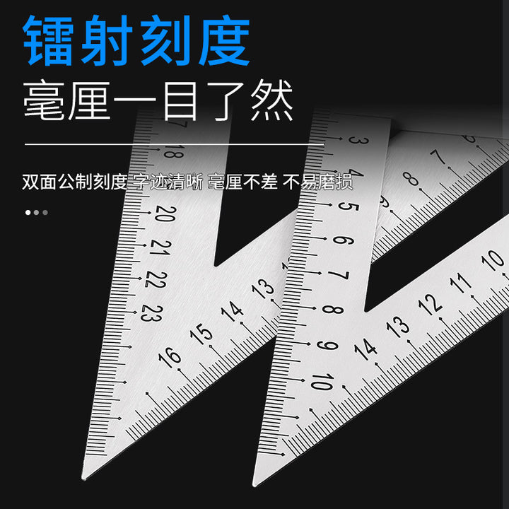 Source factory thickened triangular ruler stainless steel 90 degree woodworking straight ruler 45 degree triangular plate aluminum alloy high preci...