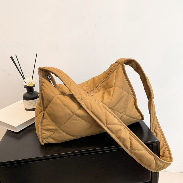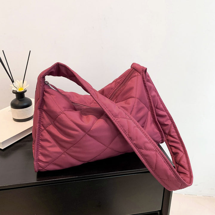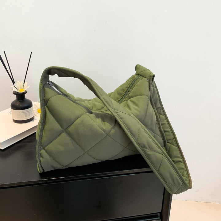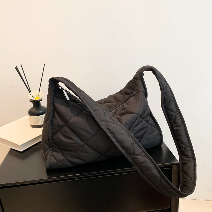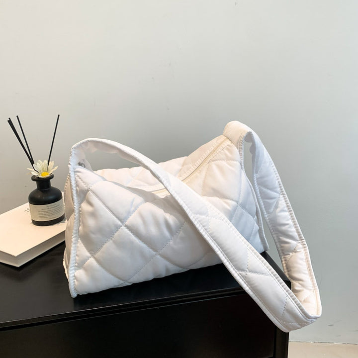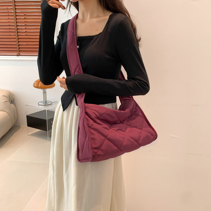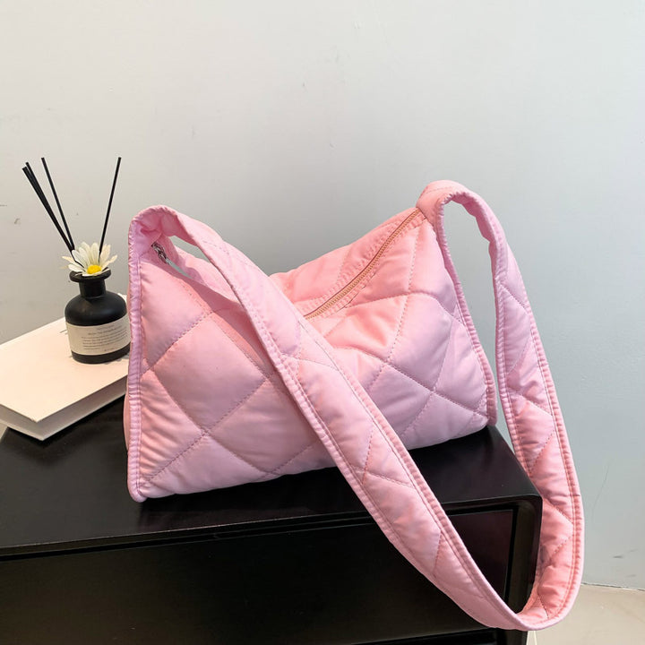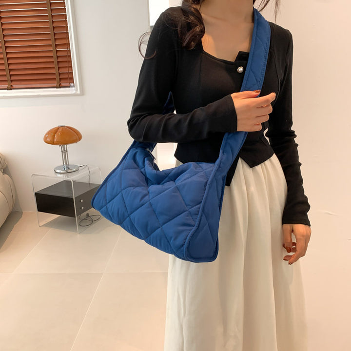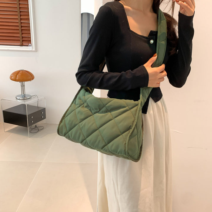 South Korea Dongdaemun bag women's 2025 new large-capacity diamond nylon down cotton clothes bag shoulder pillow bag tide