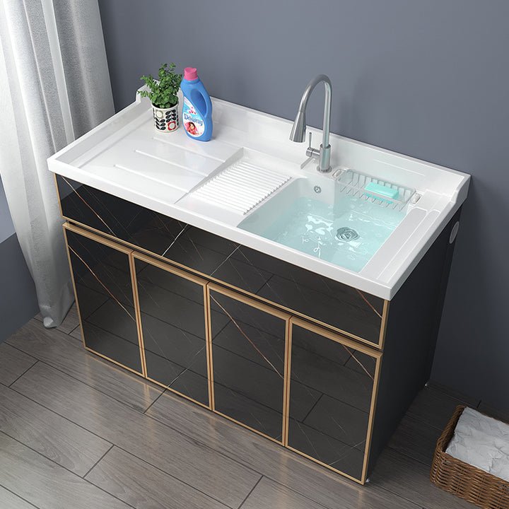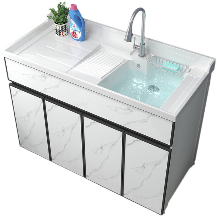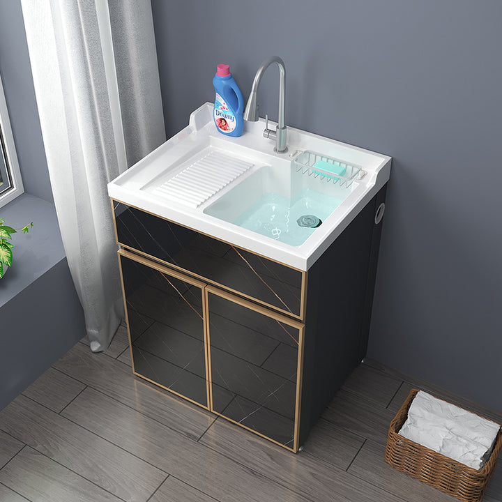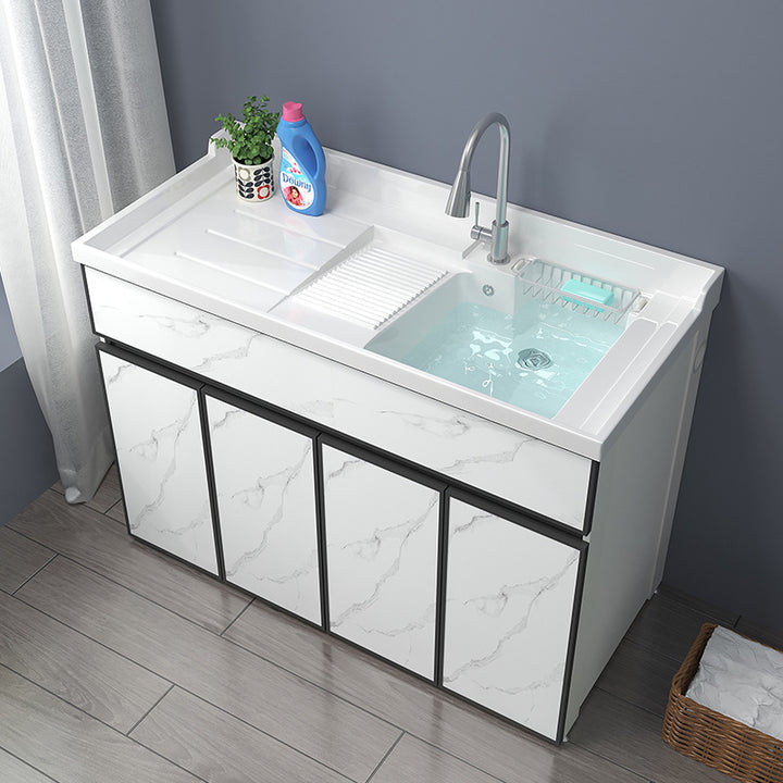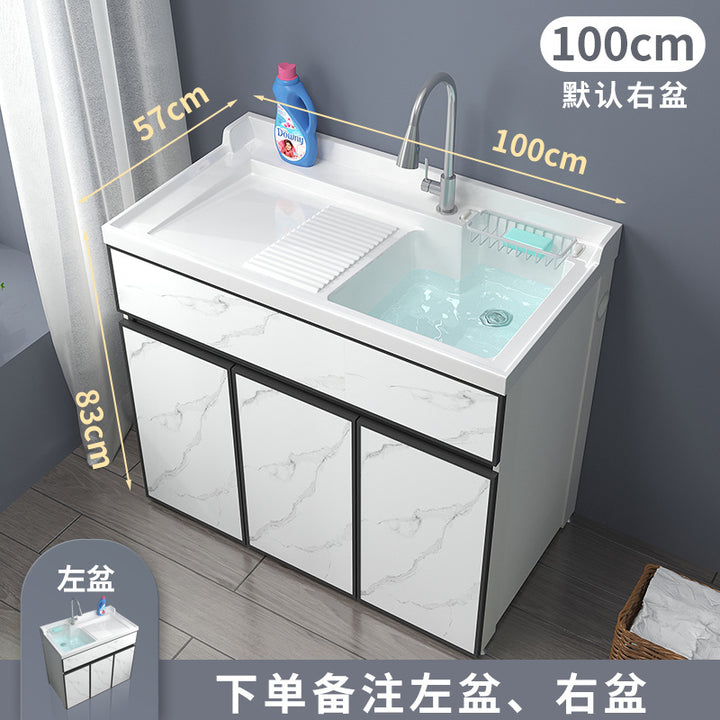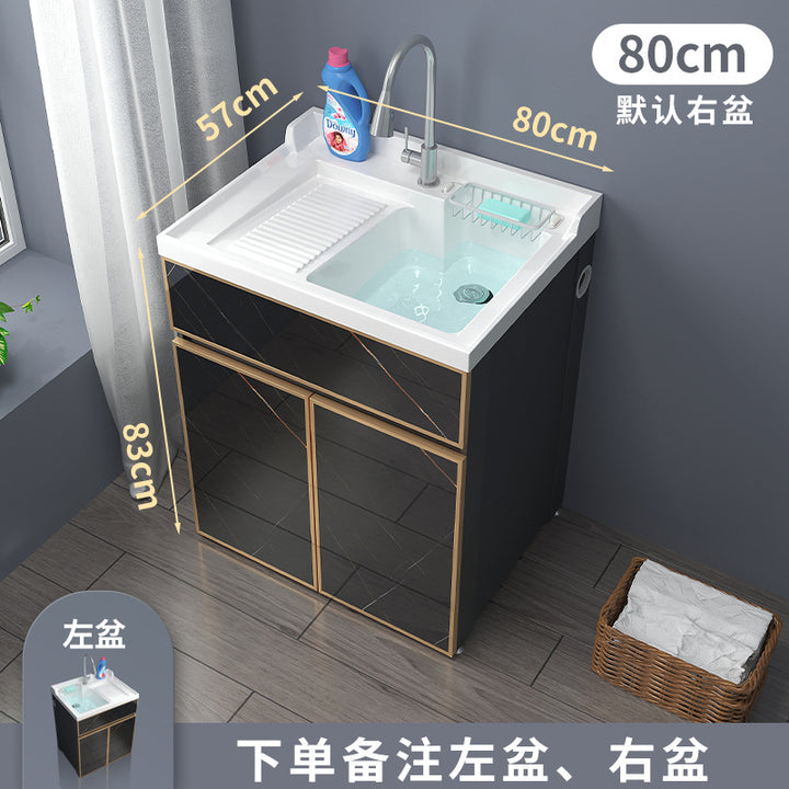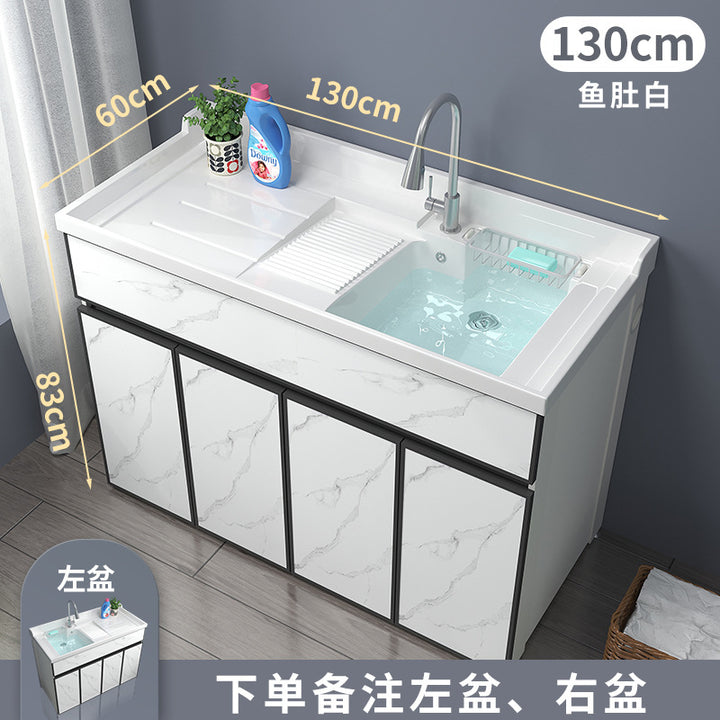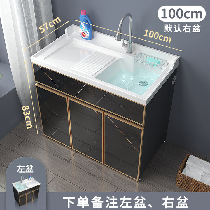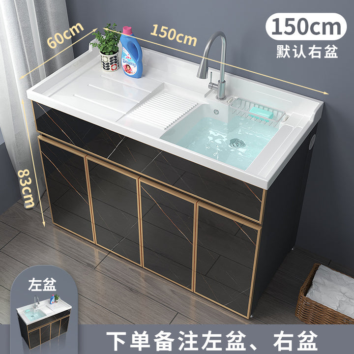 Space aluminum balcony laundry cabinet drum washing machine integrated cabinet combination significant other with rubbing board quartz stone laundr...