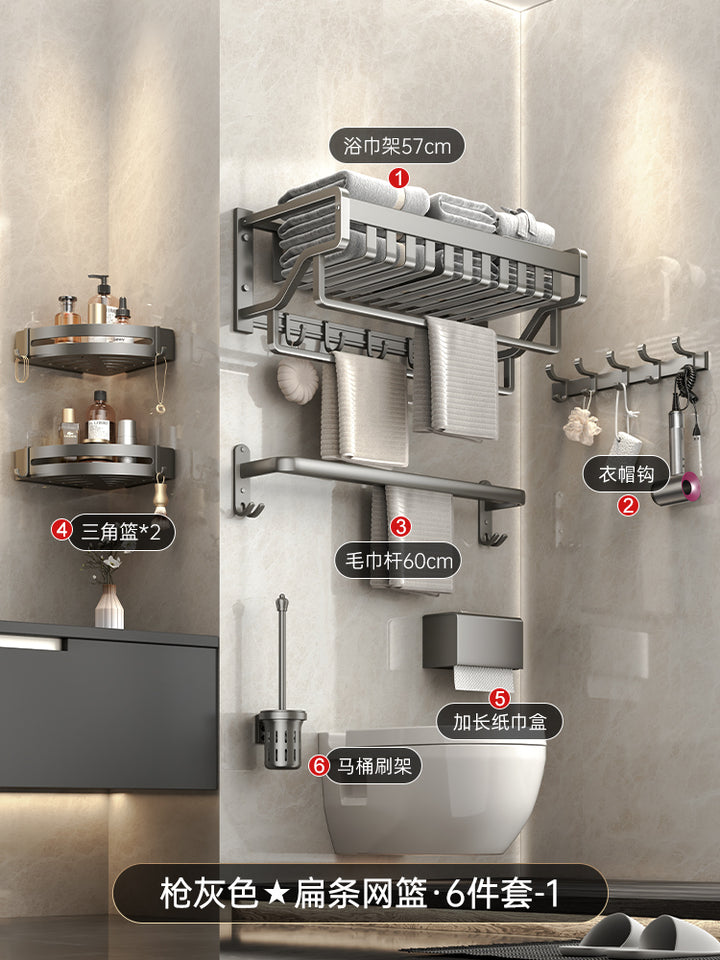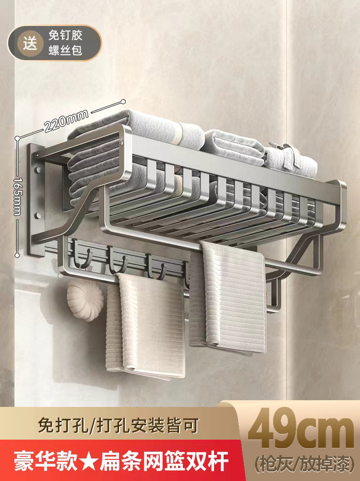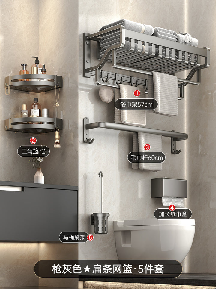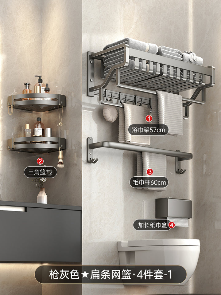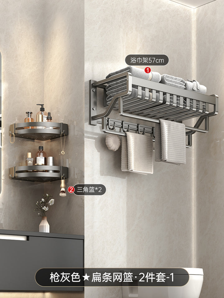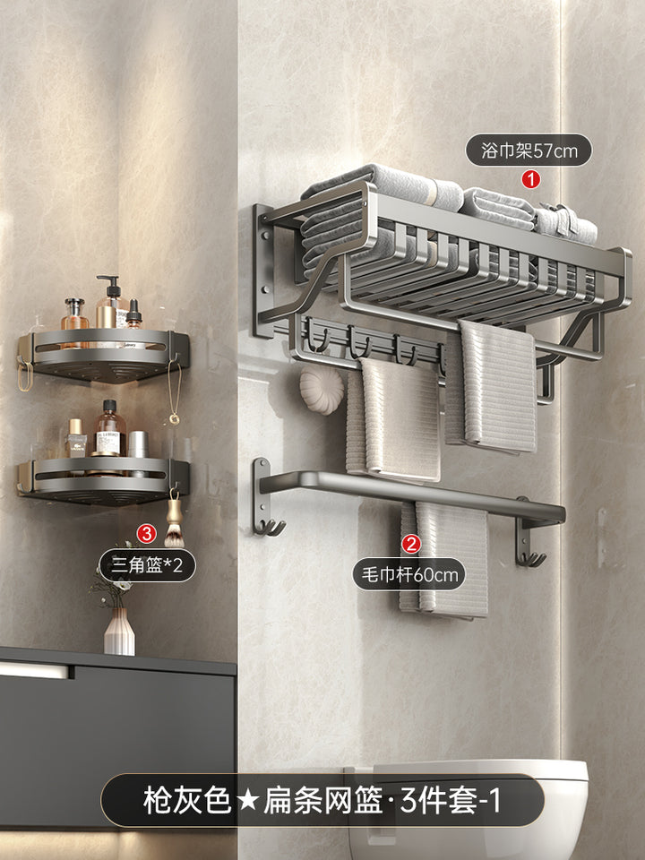 Space aluminum gun gray bathroom rack towel rack non-punching bath towel rack triangular rack...
