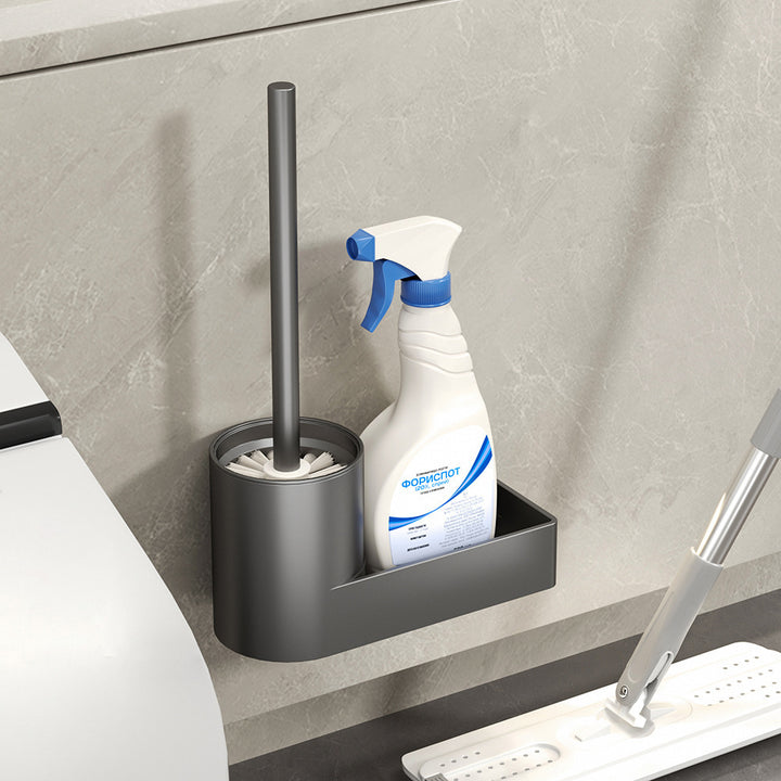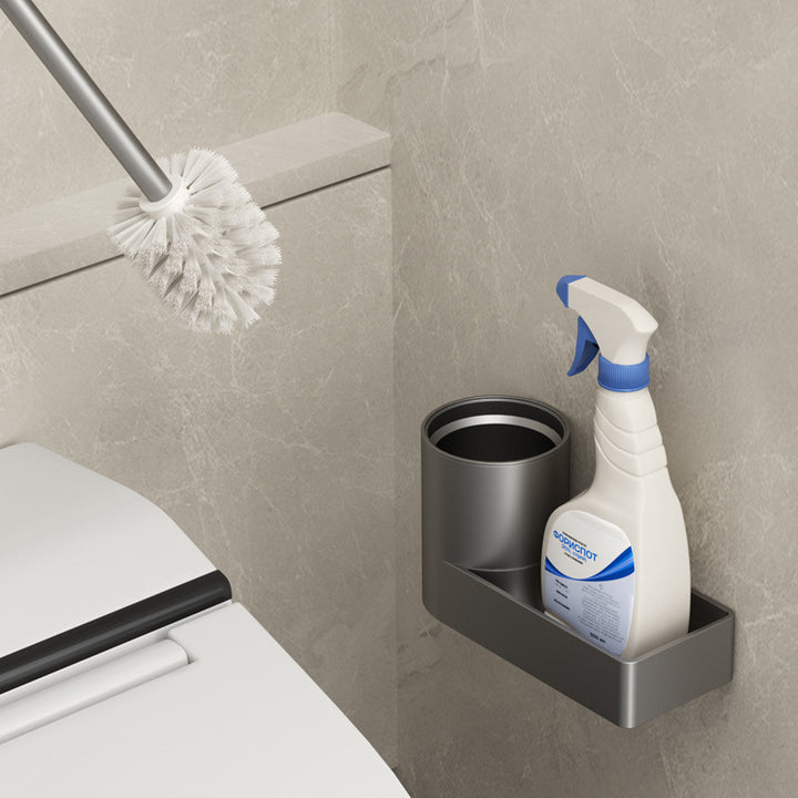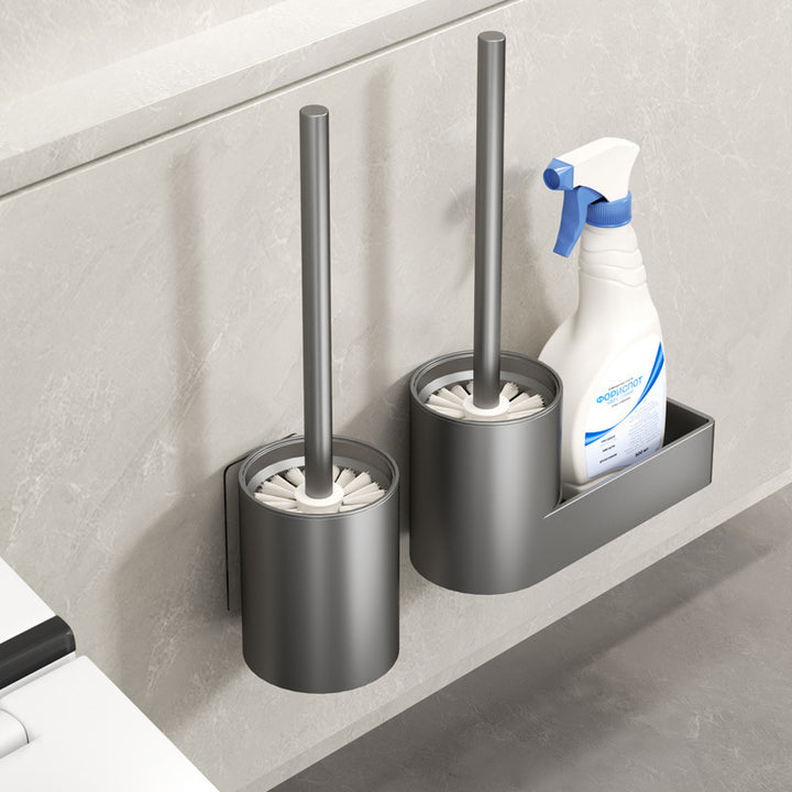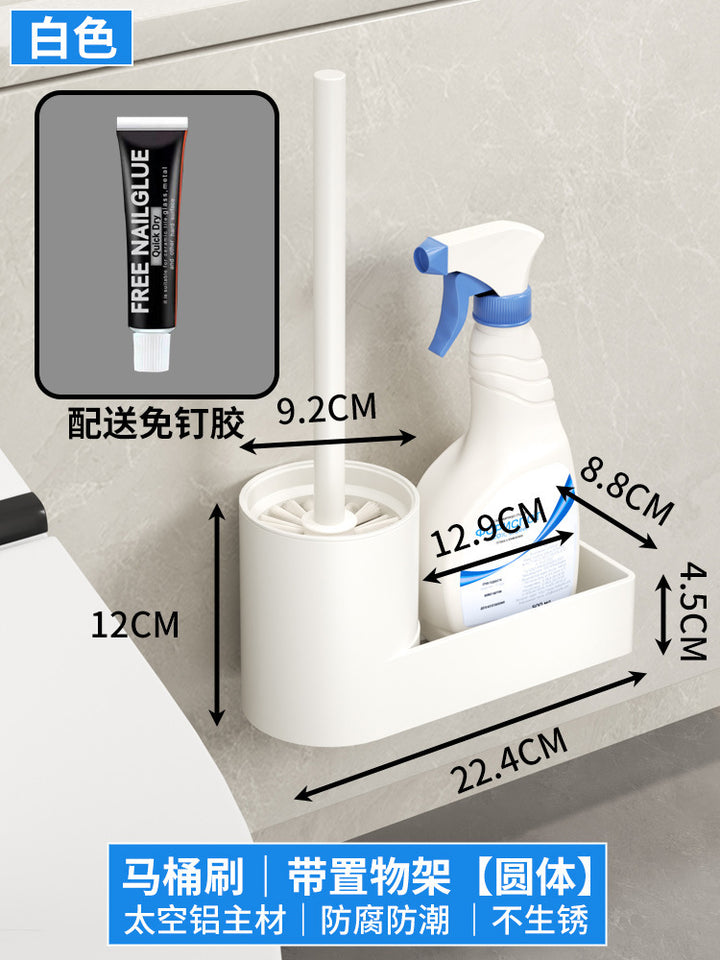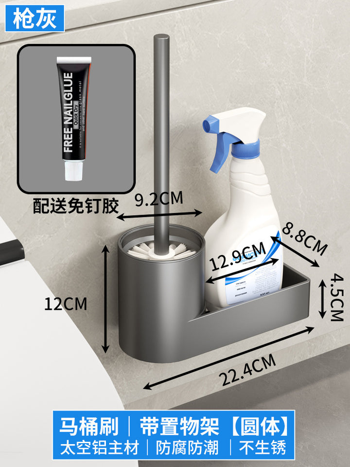 Space Aluminum Toilet Brush Set with Shelf No Dead Angle Brush Wall Hanging No Punching Toilet Bathroom Shelf