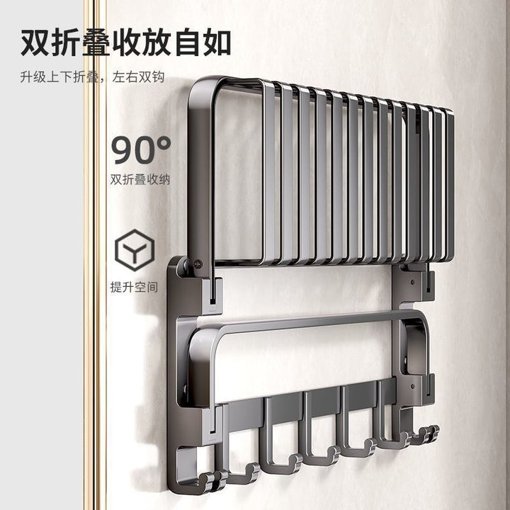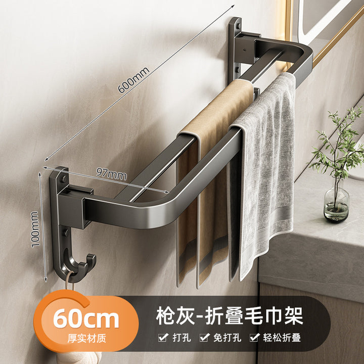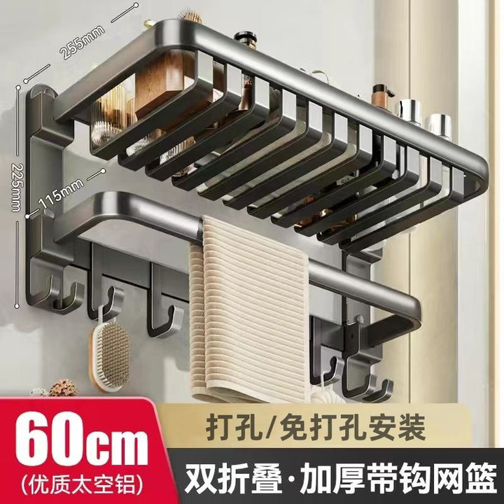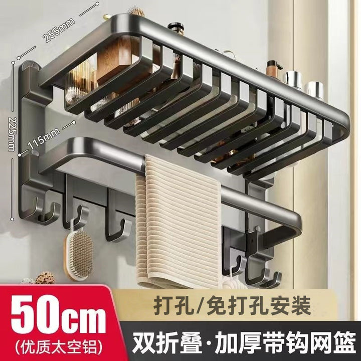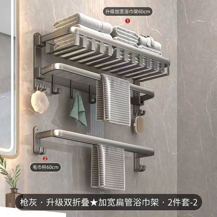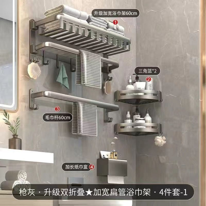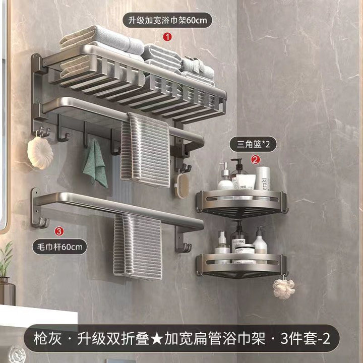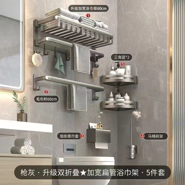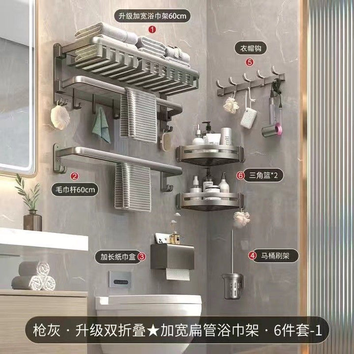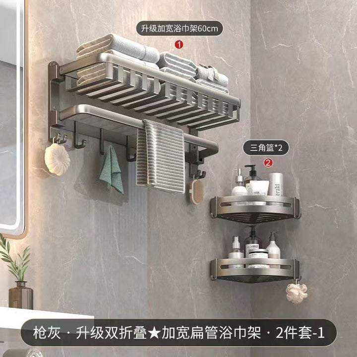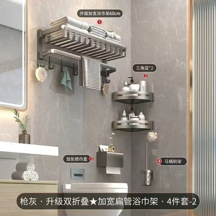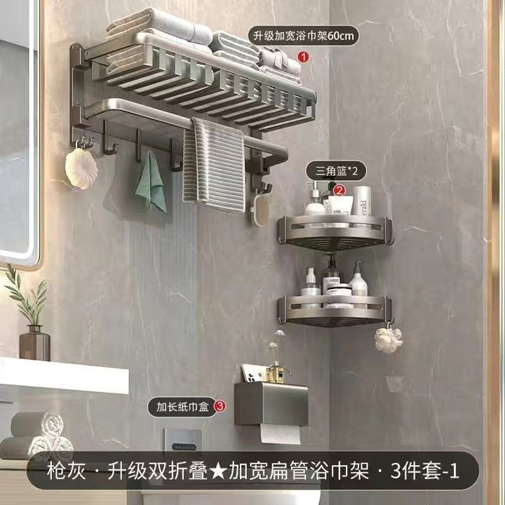 Deluxe Upgraded Thickened Mesh Basket Double Folding [with Row Hook] 50cm, Deluxe Upgraded Thickened Mesh Basket Double Folding [with Row Hook] 60cm, Two-piece set A [Deluxe 60 + flat tube towel double bar 60], Two-piece set B [Deluxe 60 + triangular basket * 2], Three-piece set A [Deluxe 60 + flat tube towel double bar 60 + triangular basket * 2], Three-piece set B [Deluxe 60 + tissue box + triangular basket * 2], Four-piece set A [Deluxe 60 + flat tube towel double bar 60 + triangular basket * 2 + tissue box], Four-piece set B [Deluxe 60 + toilet brush + triangular basket * 2 + tissue box], Five-piece set [Deluxe 60 + flat tube towel double bar 60 + triangular basket * 2 + tissue box + toilet brush], six-piece set [Deluxe 60 + flat tube towel double rod 60 + triangular basket * 2 + tissue box + toilet brush + coat hook], Gun Grey Double Triangle Blue - Dual Use, Gun ash folding double bar towel bar-60cm, Gun gray square tissue box, Gun ash - toilet brush |