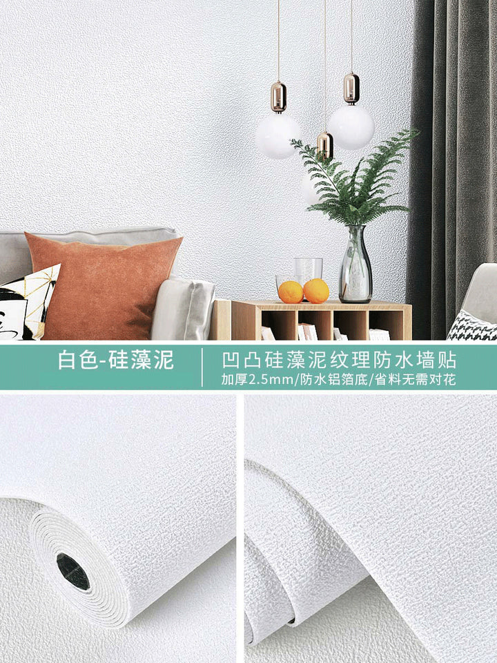Special wallpaper for gray walls Self-adhesive waterproof and moisture-proof bedside soft bag anti-collision wall sticker Rental house wallpaper Ho...