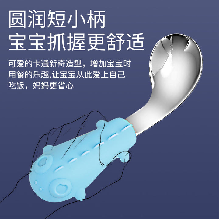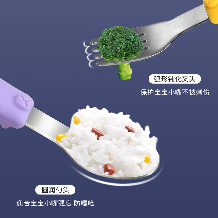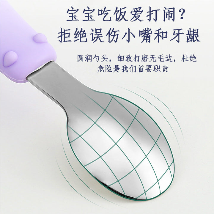 Spoon and fork silicone baby tableware baby learn to eat spoon stainless steel 304 fork children's hardware 316 set