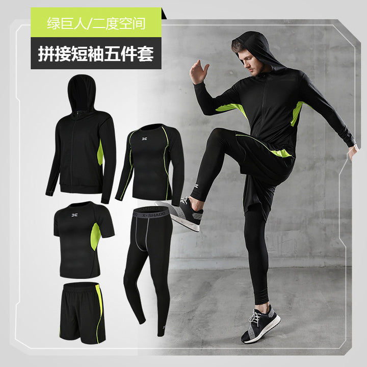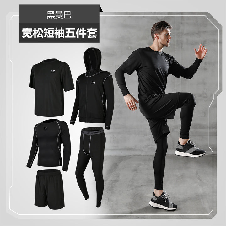 Sports Suit Men's Autumn Casual Men's Fitness Suit Running Basketball Tights Short Sleeve Pants Sportswear