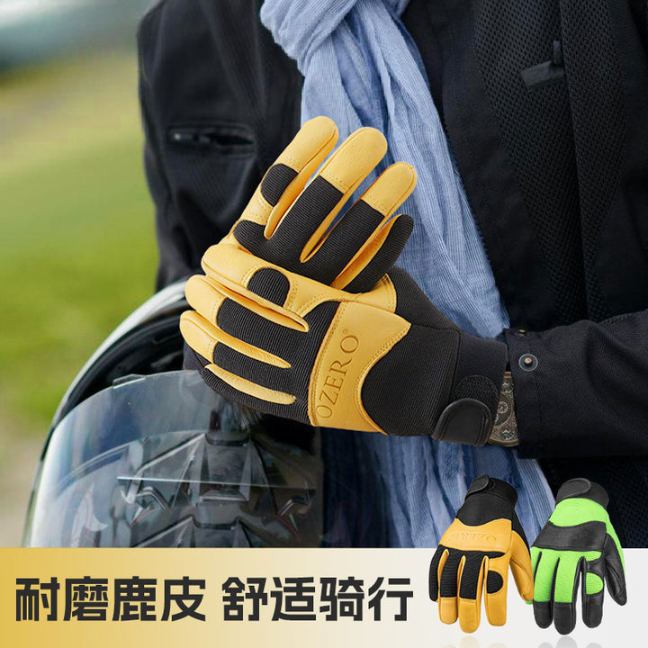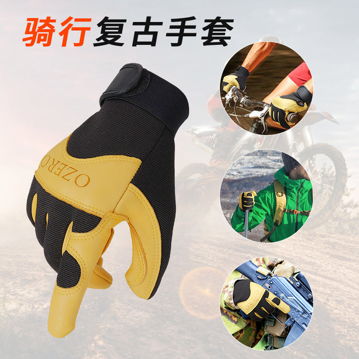 Spot 2025 deerskin motorcycle gloves men's yellow leather retro locomotive off-road knight gloves wholesale
