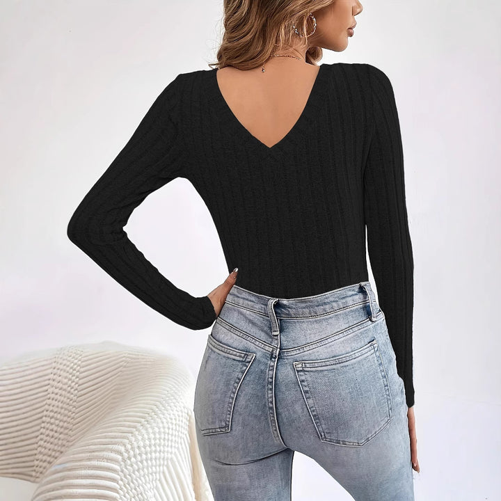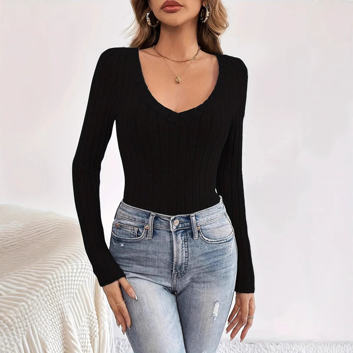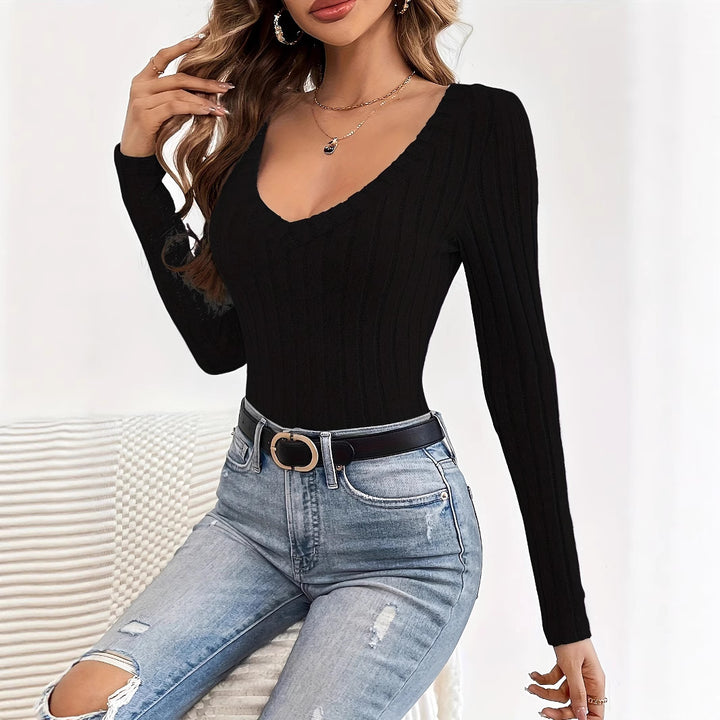 Spot 2025 Europe, America, supply Slim and thin knitted V-neck polished women's tights top